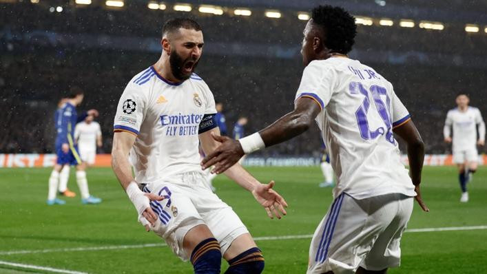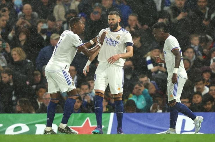 Phút 21, Benzema phối hợp một chạm với Vinicius. Tiền đạo người Pháp nhận đường chuyền từ Vinicius rồi đánh đầu tung lưới thủ môn Mendy, mở tỷ số cho đội khách Real Madrid.