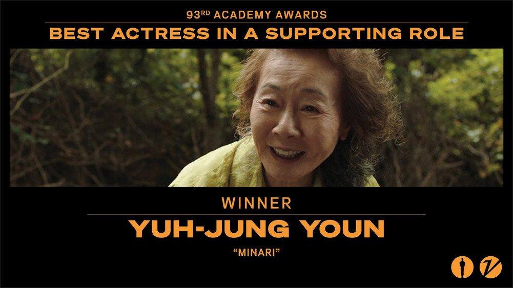 Tối 25/4 (giờ Mỹ), Youn Yuh Jung gây tiếng vang trên toàn thế giới khi trở thành diễn viên Hàn Quốc đầu tiên và nữ diễn viên châu Á thứ hai trong lịch sử (nữ diễn viên châu Á đầu tiên kể từ năm 1957) giành được tượng vàng danh giá tại Oscar. Với vai diễn bà ngoại lập dị Soon Ja trong “Minari” (Khát vọng đổi đời), Youn Yuh Jung thắng giải “Nữ diễn viên phụ xuất sắc”, viết tiếp vào chuỗi thành tích “khủng” trước đó tại “Oscar nước Anh” BAFTA, Giải thưởng của Nghiệp đoàn Diễn viên Màn ảnh Mỹ (Screen Actors Guild Awards - SAG)…