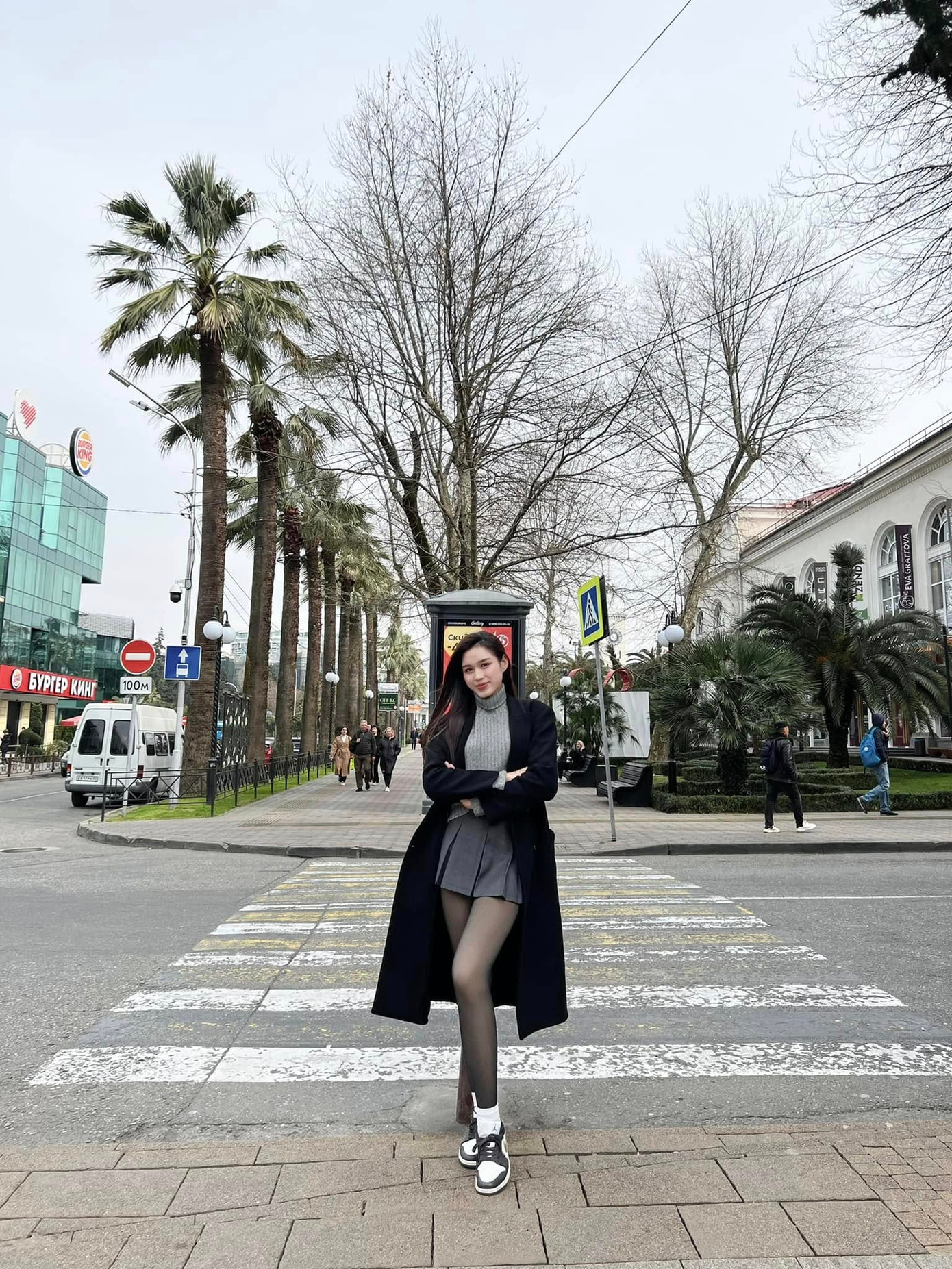 Mặc quần ngắn, váy ngắn kèm với quần tất đen chính là công thức yêu thích của Hoa hậu Đỗ Thị Hà. Trong những chuyến du lịch vào mùa Đông, cô thường phối đồ kiểu này nhìn sành điệu mà lại gọn gàng năng động.