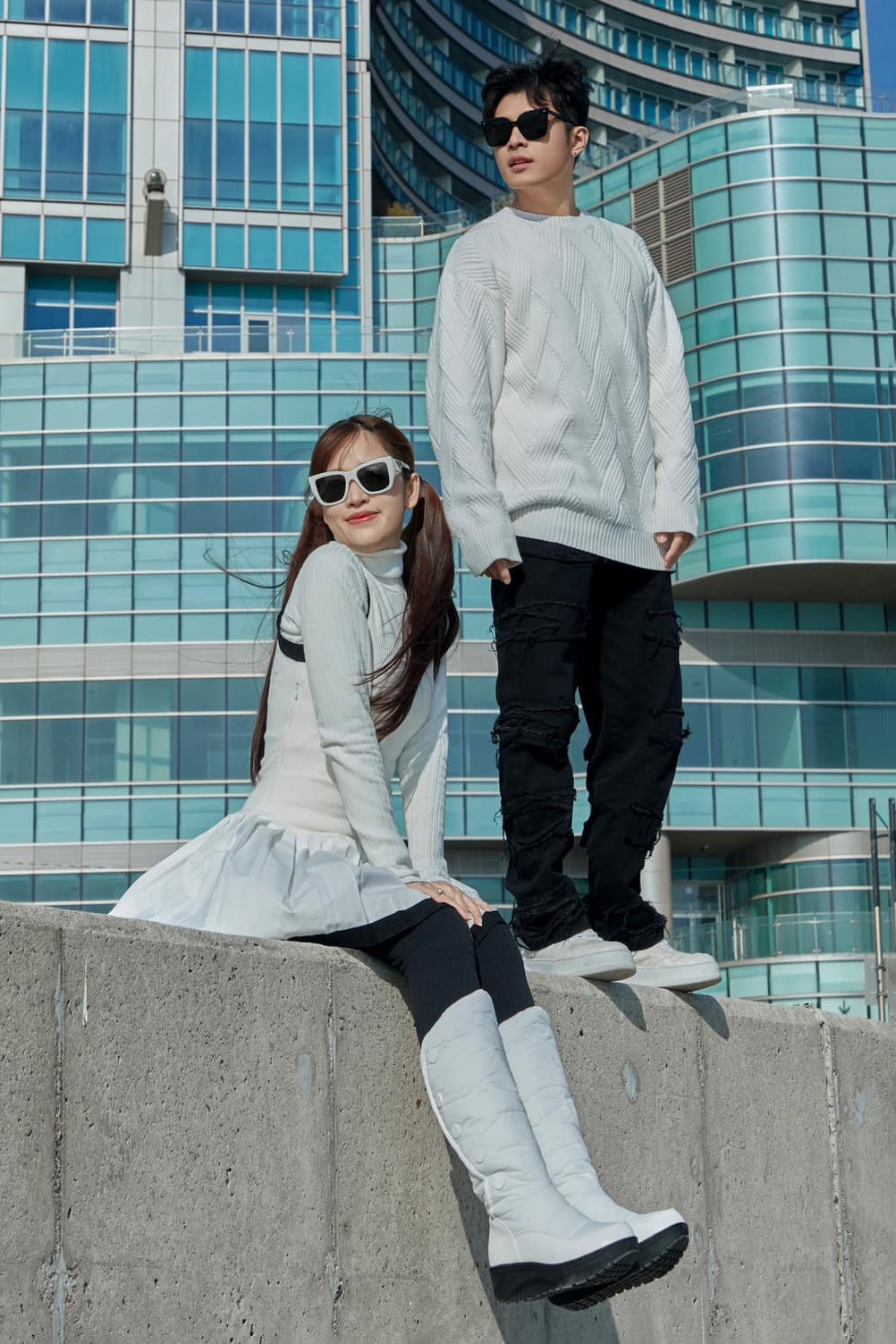 Gin Tuấn Kiệt và Puka đang tận hưởng tuần trăng mật ở Hàn Quốc và mỗi ngày, hai vợ chồng lại có những set đồ đôi vô cùng đa dạng khiến ai nhìn cũng muốn học theo. Có lúc hai người chọn trang phục giống hệt nhau, từ chiếc áo len phối hai màu xanh lá xanh tím than cùng quần trắng cực nổi bật.