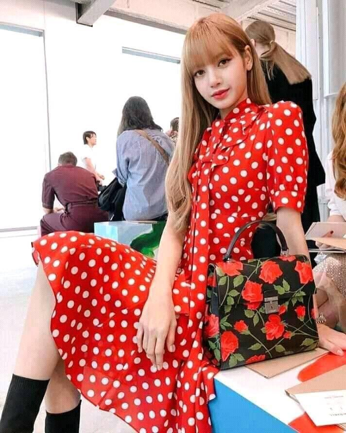 Váy đỏ túi đỏ đi cùng mái tóc vàng óng giúp Lisa đứng ở đâu cũng thu hút mọi ánh nhìn. Rất nhiều trang tin nước ngoài đã khen ngợi Lisa hết lời dù nhóm BLACKPINK thời điểm đó vẫn chưa được nhiều khán giả quốc tế biết đến.