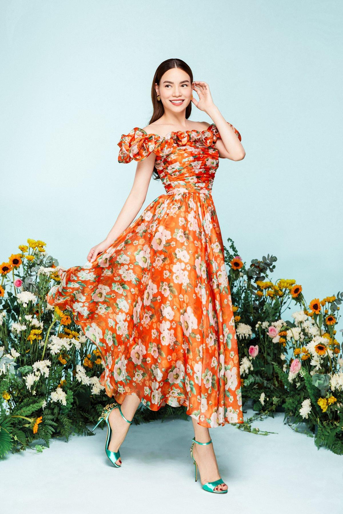 Làn da trắng mịn màng cũng giúp Hồ Ngọc Hà giúp cô kết thân được với các tông màu ngọt ngào của mùa hè như trắng, xanh, cam, hồng nhạt. Nhiều người vẫn nghĩ thời tiết nóng nực thì không nên diện những màu chói như cam, đỏ nhưng Hồ Ngọc Hà chứng minh điều ngược lại.