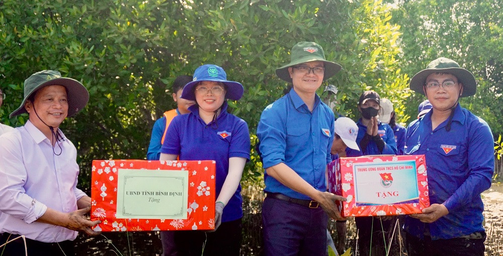 Tại chương trình, đồng chí Bùi Quang Huy - Bí thư thứ nhất Trung ương Đoàn TNCS Hồ Chí Minh đã trao tặng công trình thanh niên “Thắp sáng đường quê” tại thôn Vinh Quang 1 với tổng trị giá 120 triệu đồng; tặng công trình thanh niên “Trồng rừng ngập mặn” trị giá 100 triệu đồng, gồm 1.000 cây đước, cây tràm tại Cồn Chim và 20 suất học bổng, 20 bản đồ Việt Nam, 1 sân chơi thiếu nhi, 2 bộ trống đội, 100 thùng sữa, 500 khăn quàng đỏ với tổng trị giá 260 triệu đồng cho trường Tiểu học số 3 Phước Sơn, huyện Tuy Phước.