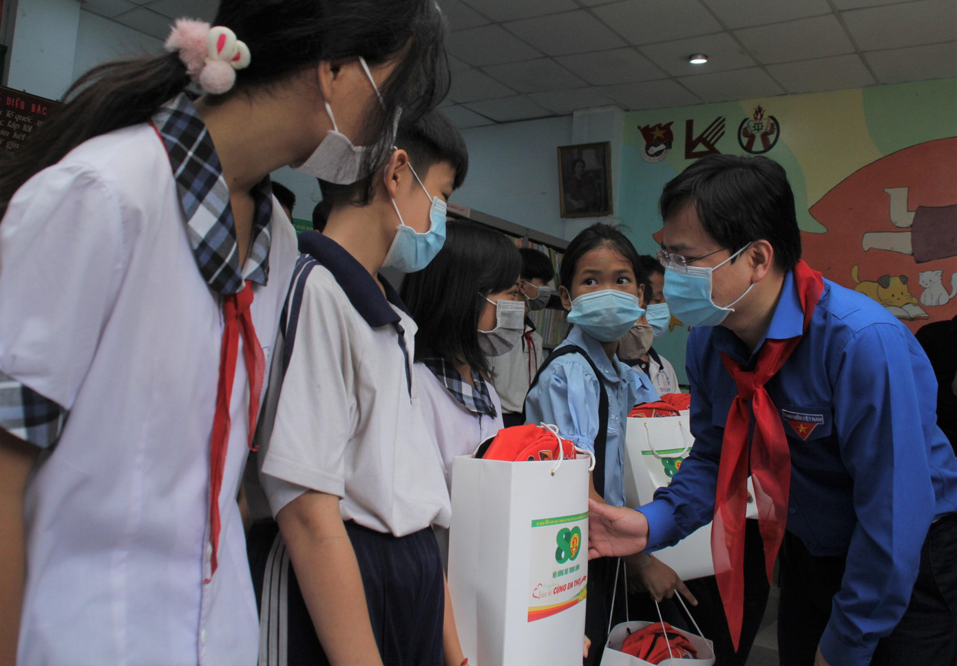 Tại đây, các lãnh đạo Trung ương Đoàn, Thành Đoàn TPHCM trao tặng 40 phần quà cho các em học sinh, thiếu nhi có hoàn cảnh khó khăn ở lớp học. Đoàn công tác cũng tặng phần quà thiết yếu cho đội sinh viên tình nguyện đang tham gia hướng dẫn, hỗ trợ kiến thức cho các em.
