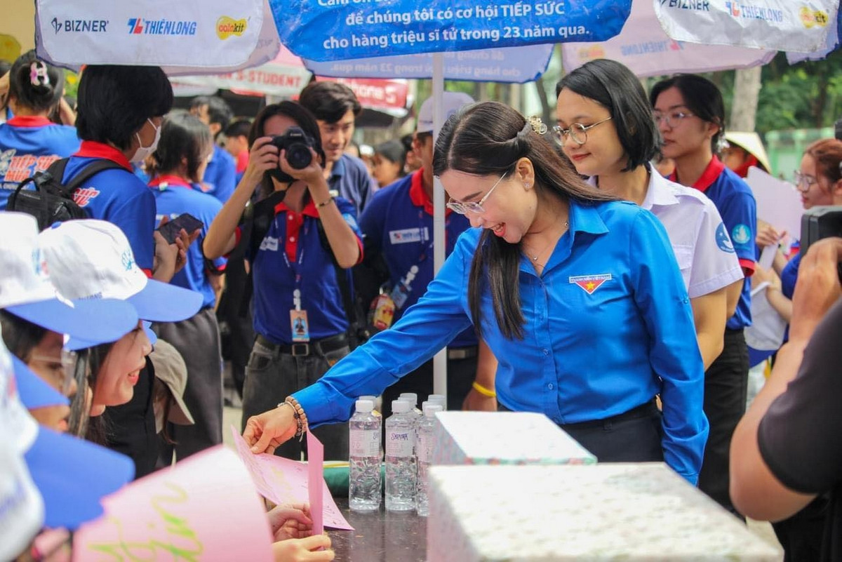 Được biết, đội tình nguyện viên “Tiếp sức mùa thi” tại điểm trường THPT Hùng Vương đa số đều là sinh viên năm nhất đến từ trường Đại học Y Dược TP.HCM. Đây là thời điểm đang diễn ra kỳ thi học kỳ tại các trường đại học, tuy nhiên các bạn sinh viên vẫn cố gắng sắp xếp thời gian để tham “Tiếp sức mùa thi”, tiếp sức cho các sĩ tử trong kỳ thi quan trọng này.