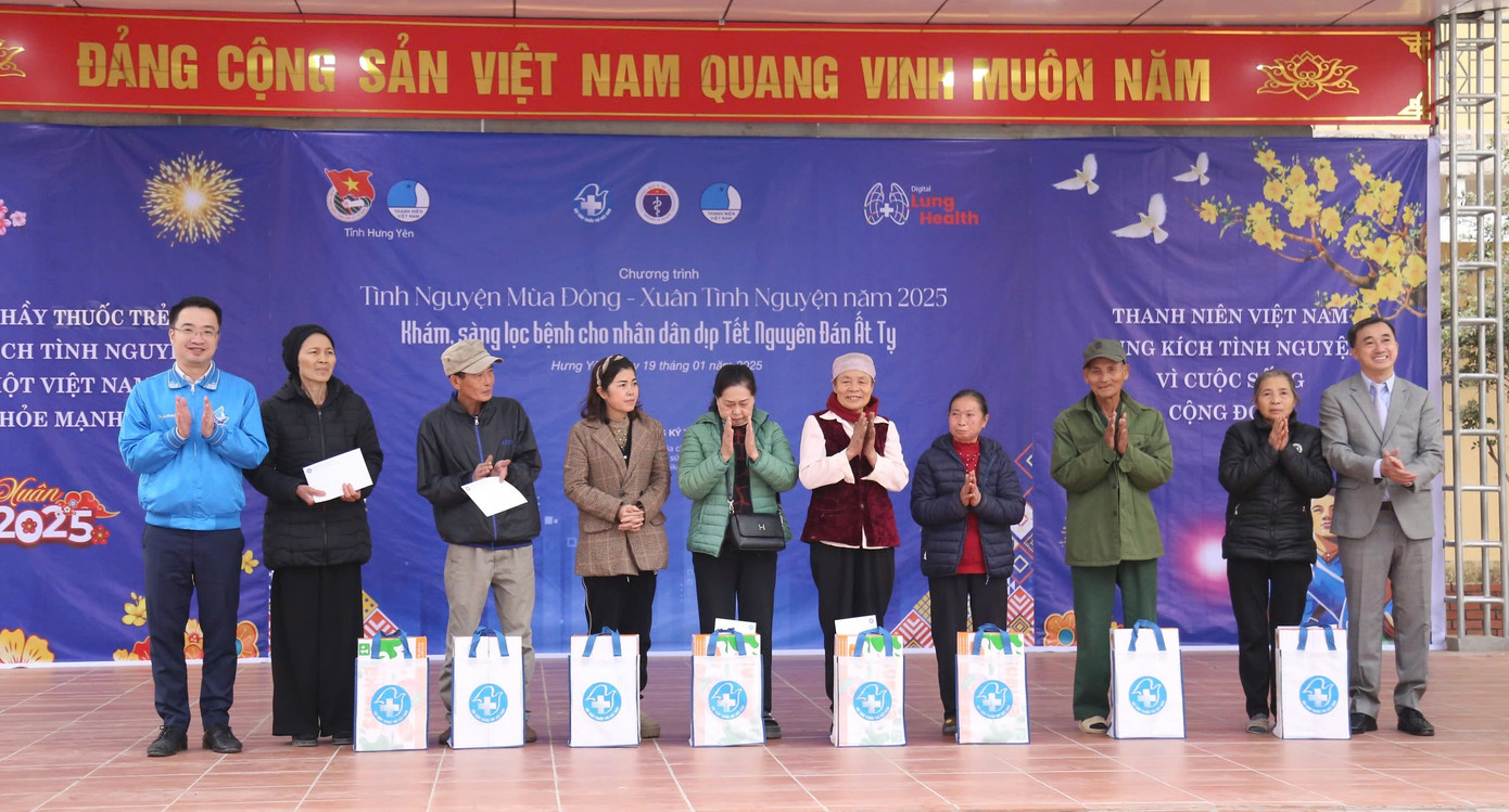 Vừa qua, tại huyện Khoái Châu, Hưng Yên, T.Ư Đoàn TNCS Hồ Chí Minh, T.Ư Hội Liên hiệp thanh niên Việt Nam, T.Ư Hội Thầy thuốc trẻ Việt Nam phối hợp với các đơn vị tổ chức chương trình Tình nguyện mùa Đông - Xuân tình nguyện 2025 với hoạt động khám bệnh cấp phát thuốc miễn phí cho 1.000 người dân và Sàng lọc ung thư cho 500 người có nguy cơ.