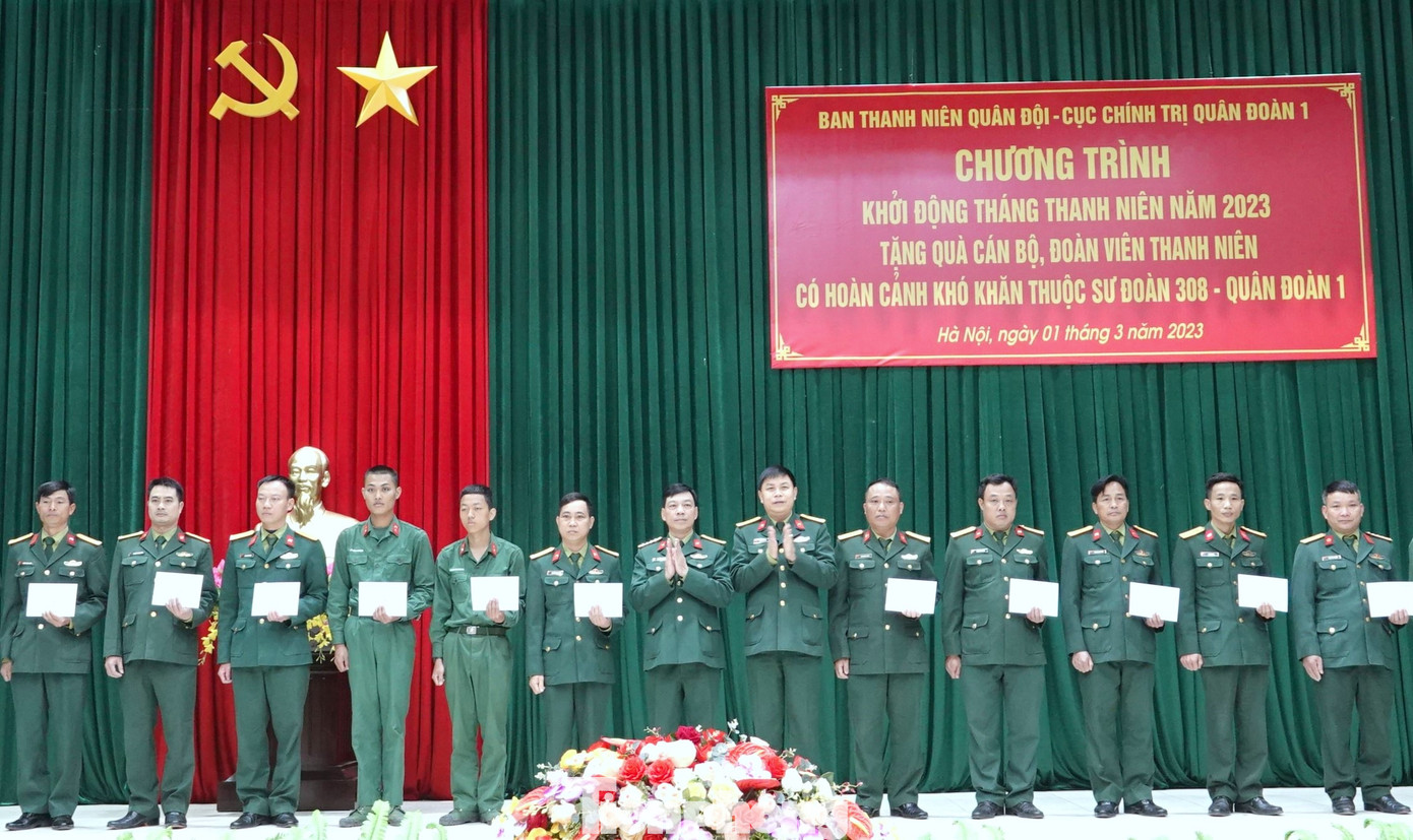 Dịp này, Ban Thanh niên Quân đội và Cục Chính trị Quân đoàn 1 tặng 60 suất quà cho cán bộ Đoàn, ĐVTN thuộc Trung đoàn 102 có hoàn cảnh khó khăn và đối tượng chính sách trên địa bàn huyện Quốc Oai, thành phố Hà Nội (mỗi suất trị giá 1 triệu đồng).
