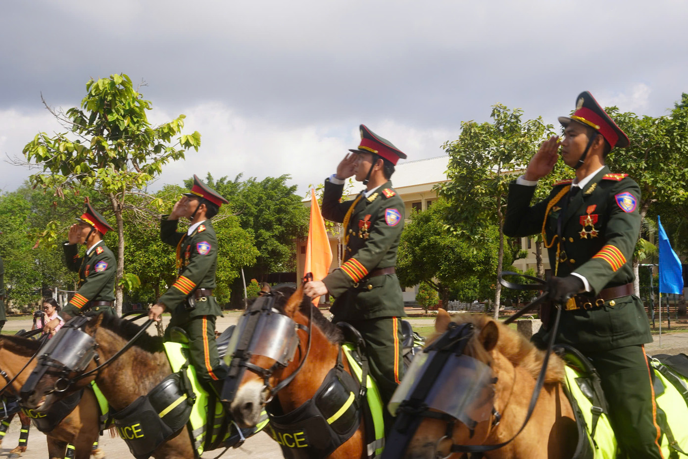 Cùng trong sáng 25/4, đoàn công tác đã đến thăm và động viên lực lượng Thanh niên Công an tại Đoàn Cảnh sát Cơ động Kỵ binh (TP Thủ Đức). Đây là đơn vị có lực lượng thanh niên tiêu biểu, mới được thành lập và lần đầu tiên tham gia một lễ diễu binh cấp quốc gia.