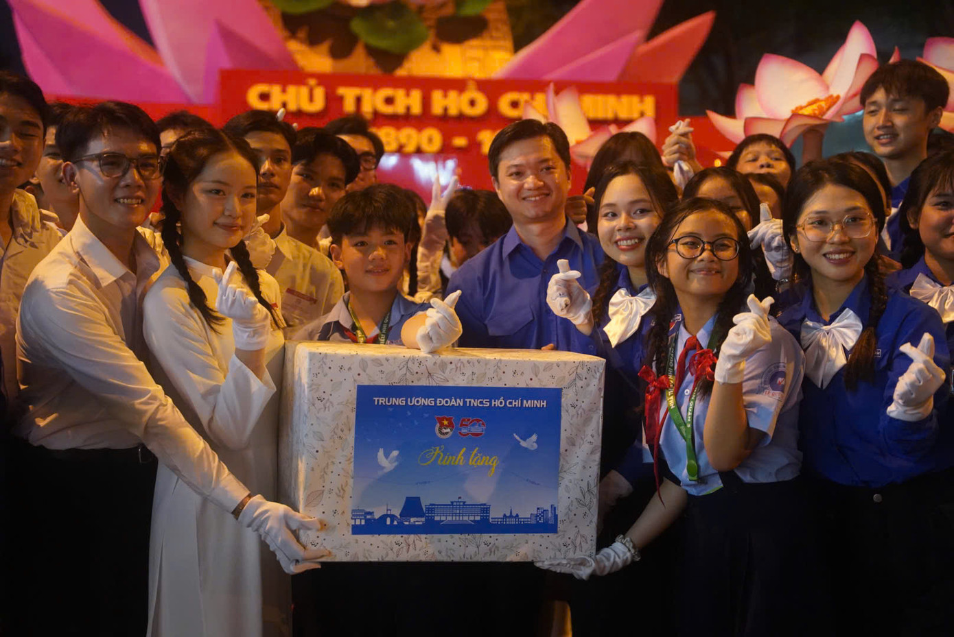 Tối 25/4, trước thời điểm diễn ra buổi sơ duyệt diễu binh, diễu hành, anh Nguyễn Minh Triết - Bí thư T.Ư Đoàn, cùng đoàn công tác đã đến đường Lê Duẩn (Q.1) để gặp gỡ, thăm hỏi các lực lượng thanh thiếu nhi tham gia diễu hành.