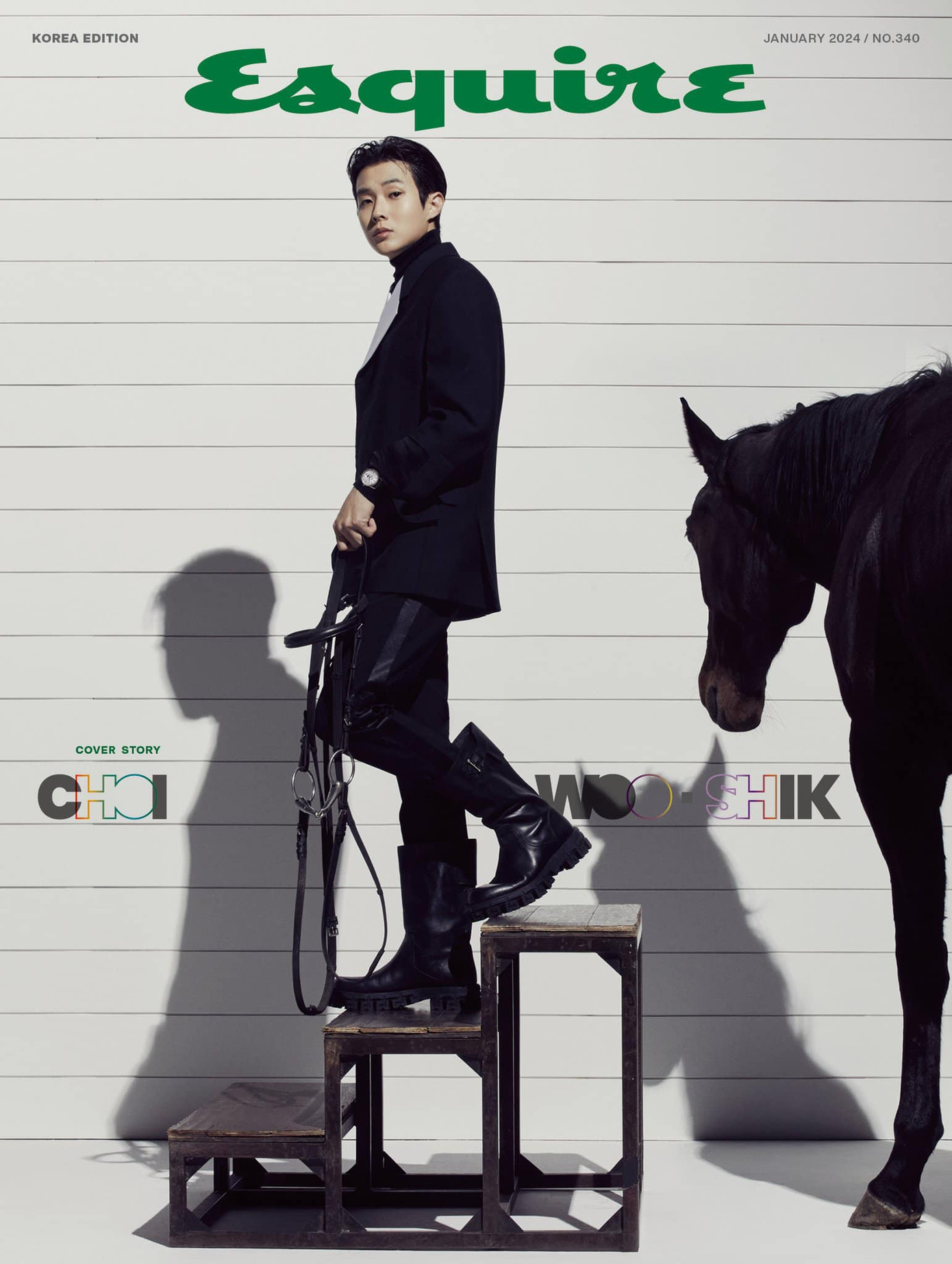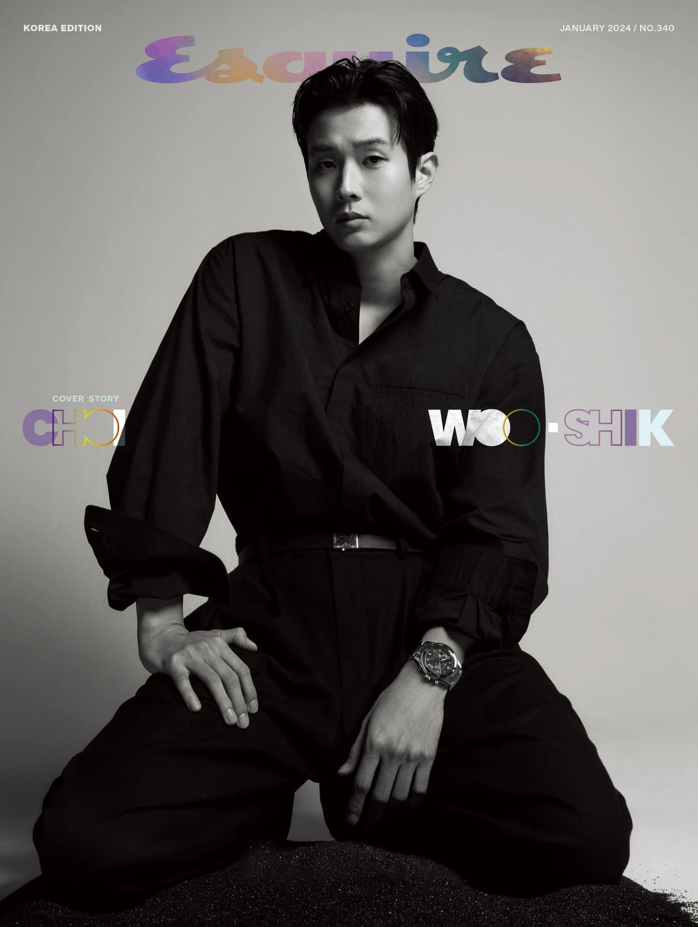 Trang bìa tạp chí Esquire Hàn số Khai niên nhận được sự quan tâm của khán giả bởi nhan sắc nam tính của Choi Woo Shik. Nam diễn viên từng “đốn tim” người hâm mộ với vẻ ngoài ngây thơ, lột xác với sắc vóc trưởng thành trong loạt bìa lần này.