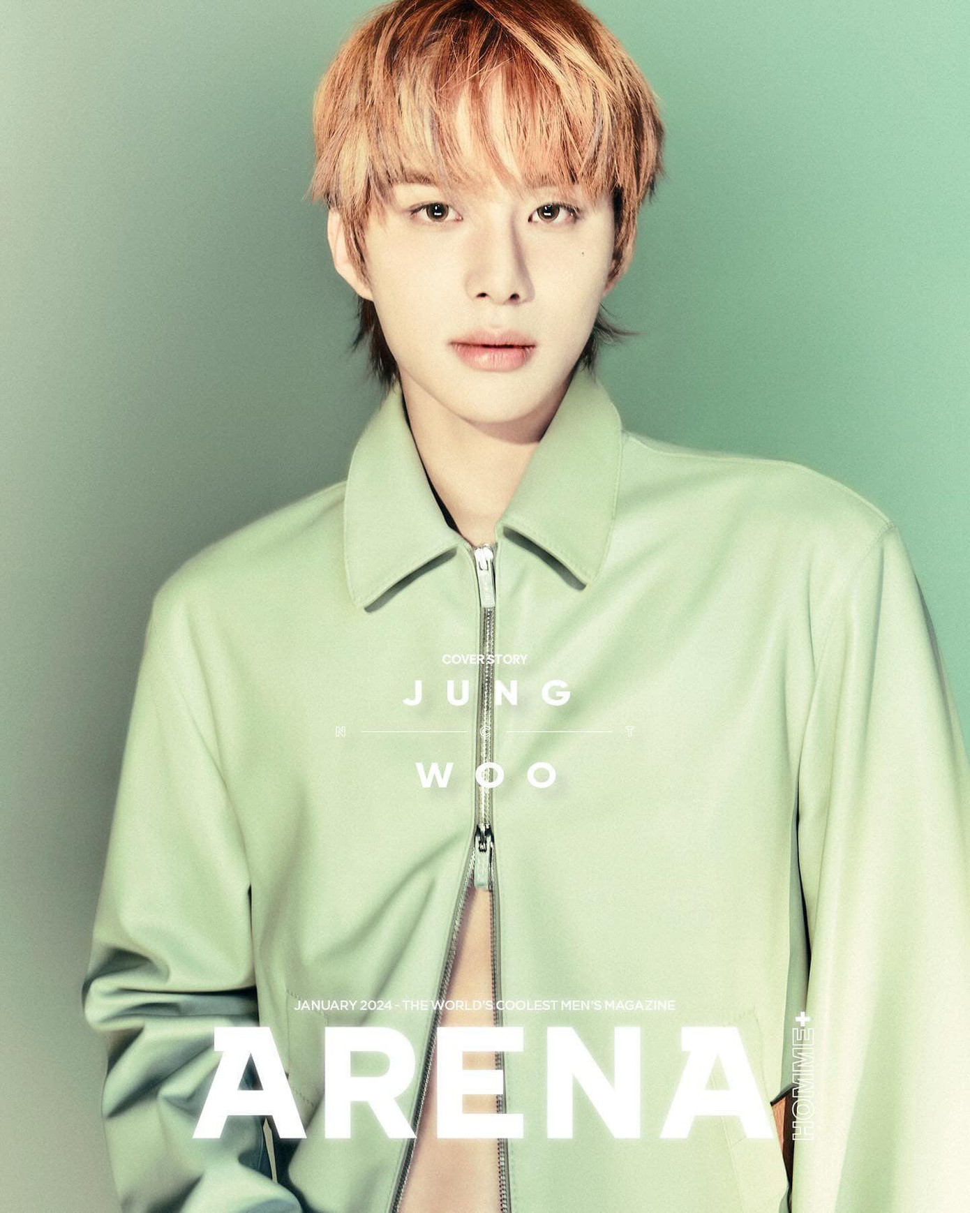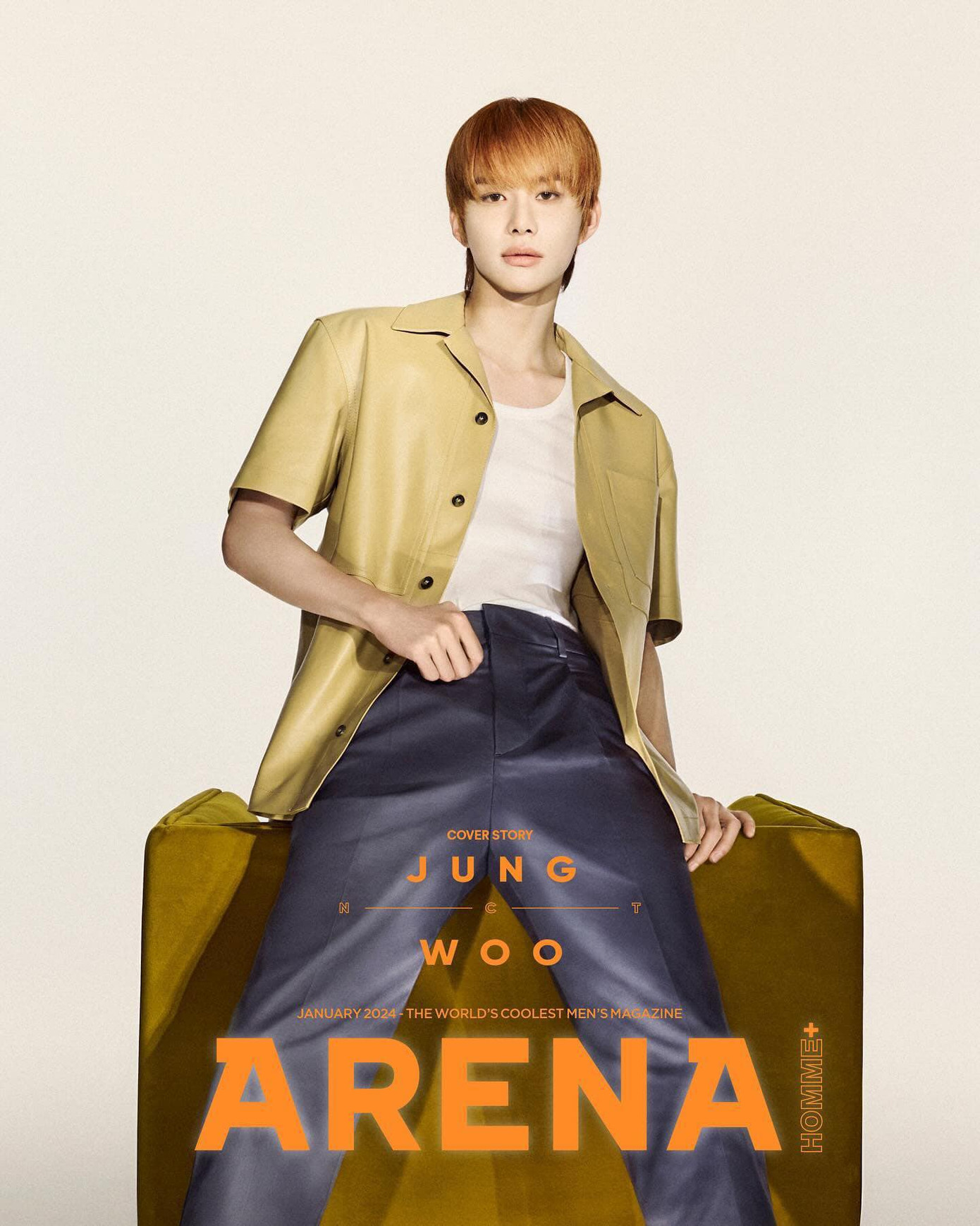 Gương mặt trang bìa tháng 1/2024 của tạp chí Arena Hàn gọi tên Jungwoo NCT. Nam idol đồng hành cùng thương hiệu Tod's trong lần lên bìa này. Anh khoe nhan sắc điển trai trong loạt trang phục mang hơi thở vượt thời gian.