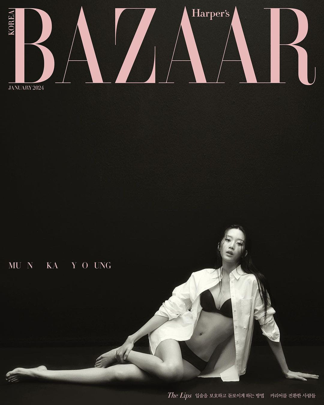 Moon Ga Young hiện là ngôi sao triển vọng của làng giải trí Hàn Quốc, nữ diễn viên 27 tuổi trở thành ngôi sao trang bìa Harper's BAZAAR Hàn số Khai niên. Nữ chính True Beauty khoe vóc dáng quyến rũ với trang phục của thương hiệu Calvin Klein.
