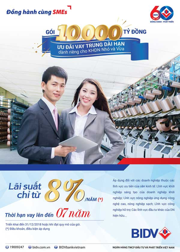 Những năm gần đây, với thông điệp cam kết “Đồng hành cùng doanh nghiệp nhỏ và vừa Việt Nam” (Đồng hành cùng SMEs), BIDV đã thường xuyên triển khai các chương trình cho vay ưu đãi hỗ trợ DNNVV như gói tín dụng ngắn hạn cạnh tranh 10.000 tỷ đồng triển khai từ tháng 2/2017; Gói tín dụng 3.000 tỷ đồng tài trợ vốn cho doanh nghiệp khởi nghiệp (Start-up) và doanh nghiệp siêu nhỏ triển khai từ tháng 5/2017; Gói tín dụng 10.000 tỷ đồng ưu đãi doanh nghiệp là thành viên Hiệp hội DNNVV VN (VINASME) triển khai từ tháng 8/2017.