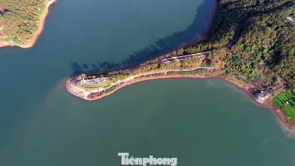 Đường chạy đẹp mê hồn giữa rừng thông bát ngát và không gian mên mông của nước hồ xanh ngắt.