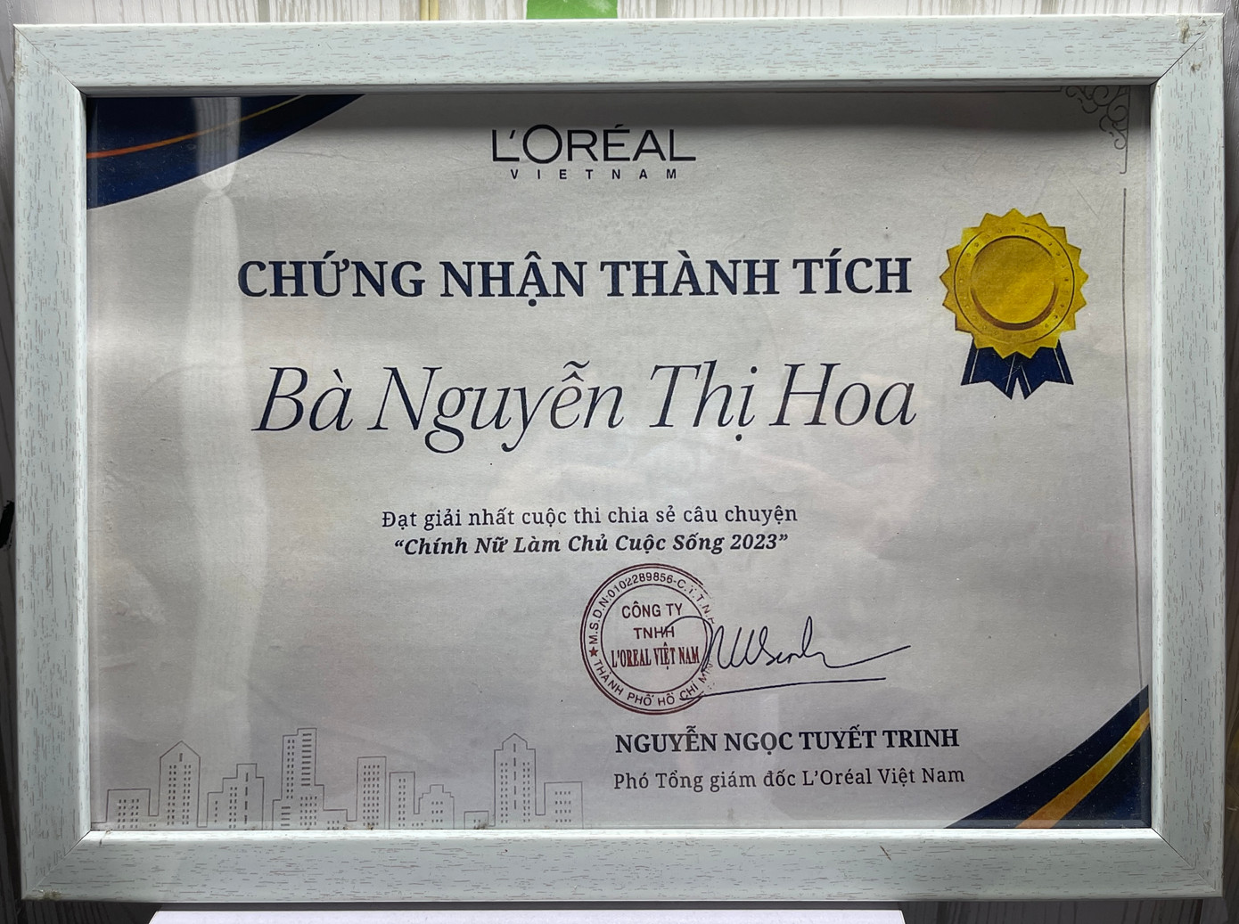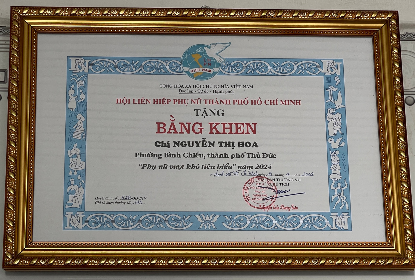 | Những bằng khen lại tiếp thêm tinh thần cho chị Hoa trên con đường theo đuổi nghệ thuật. |