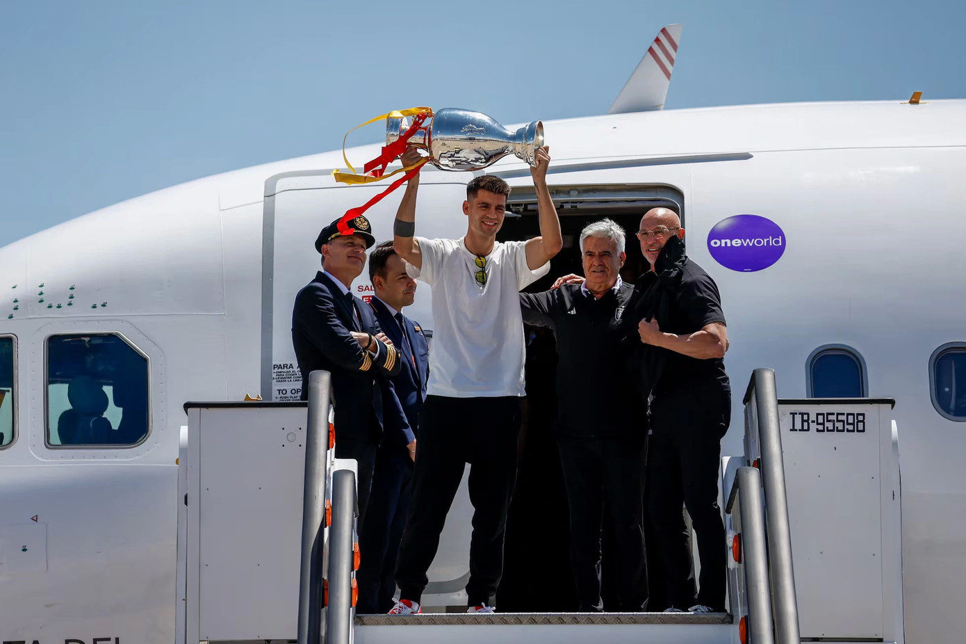 Ngay khi đặt chân xuống từ chuyên cơ, ĐT Tây Ban Nha đã bắt đầu cuộc vui. Họ được các quan chức chính phủ ra tận cửa sân bay đón tiếp. Đoàn xe chở ĐT Tây Ban Nha sau đó tiến về cung điện Zarzuela để diện kiến hoàng gia.