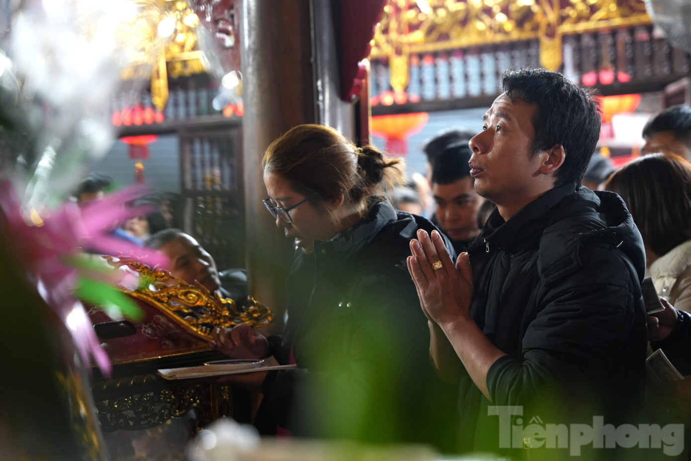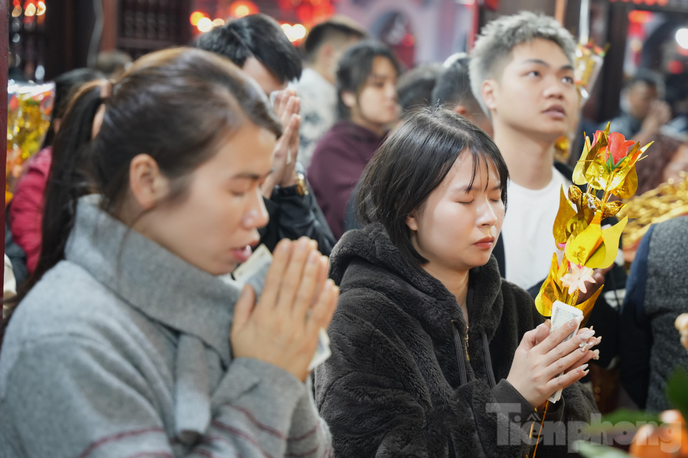 Người dân đội mâm lễ nhích từng chút một vào phủ để dâng lễ đầu năm.