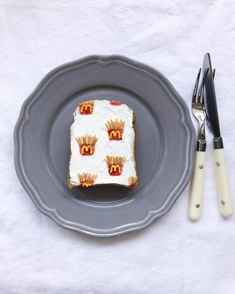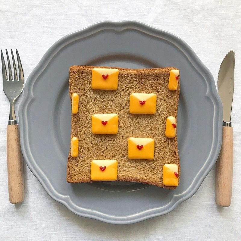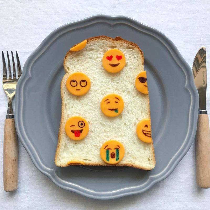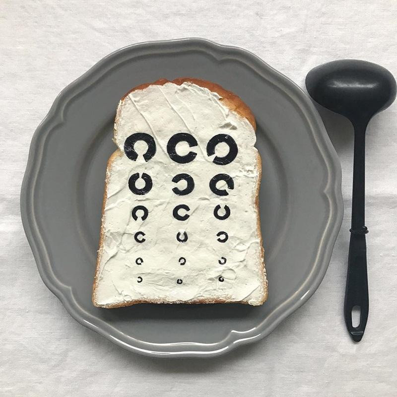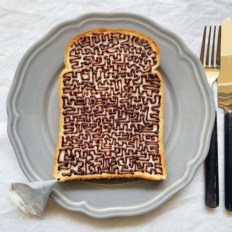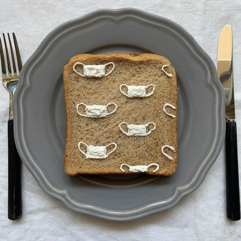Vốn yêu thích làm bánh, Eiko Mori - một nghệ sĩ thị giác Nhật Bản bắt đầu bén duyên với việc “vẽ” trên những lát bánh mì vuông từ năm 2017. Ban đầu, Eiko Mori nghịch ngợm với những họa tiết đơn giản, vẽ những trái bơ, quýt chín mọng, chùm nho, kiwi... trên lớp kem chua.