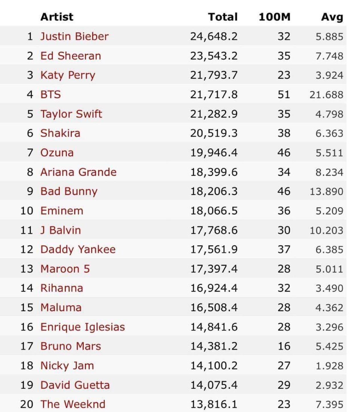 Nếu BLACKPINK hơn BTS ở lượng người subscriber ở kênh YouTube cá nhân, thì BTS lại vượt BTS rất xa ở lượng view. BTS hiện là nhóm nhạc có lượng view YouTube cao nhất lịch sử với 21,8 tỉ view, Maroon 5 là nhóm nhạc đứng thứ 2 với 17,3 tỉ view, BLACKPINK đứng thứ 3 với 13,6 tỉ view.