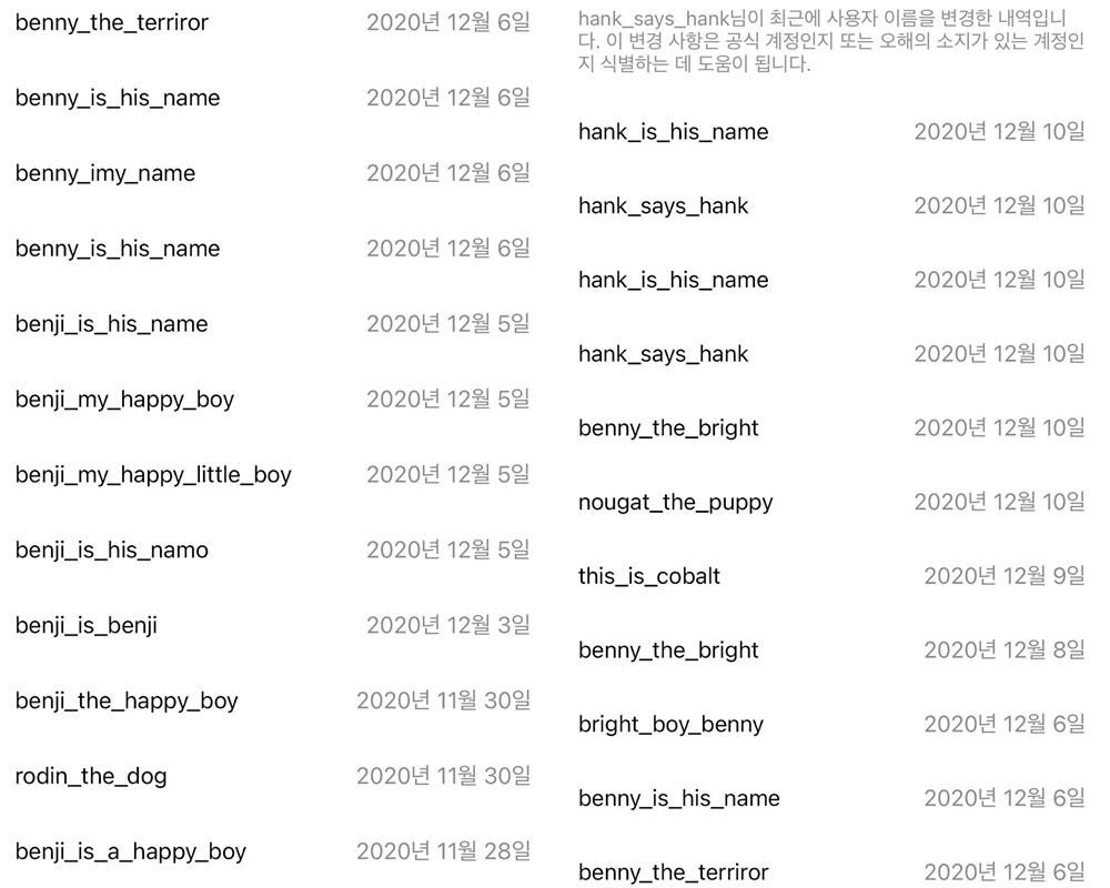 Nhưng nhìn sang quá trình Rosé tìm tên cho Instagram của cún cưng thì netizen mới choáng. Hóa ra Rosé mở tài khoản từ trước khi đặt tên chú cún là Hank nên giọng ca chính BLACKPINK đã nghĩ đến Benny, Benju, Nougat rồi Cobalt.