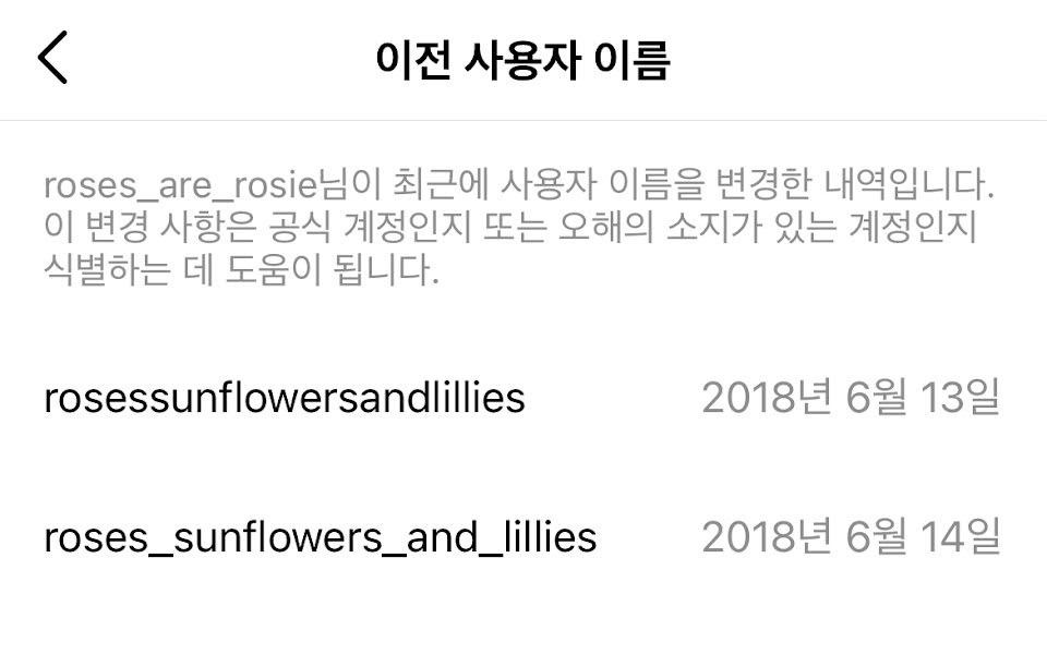 Rosé thực ra chỉ đổi tên hai lần là chốt được tên chính thức @roses_are_rosie. Cả ba cái tên mà Rosé đưa ra đều liên quan đến các loài hoa, hai tên đầu gồm hoa hướng dương, hoa ly và cuối cùng là hoa hồng.