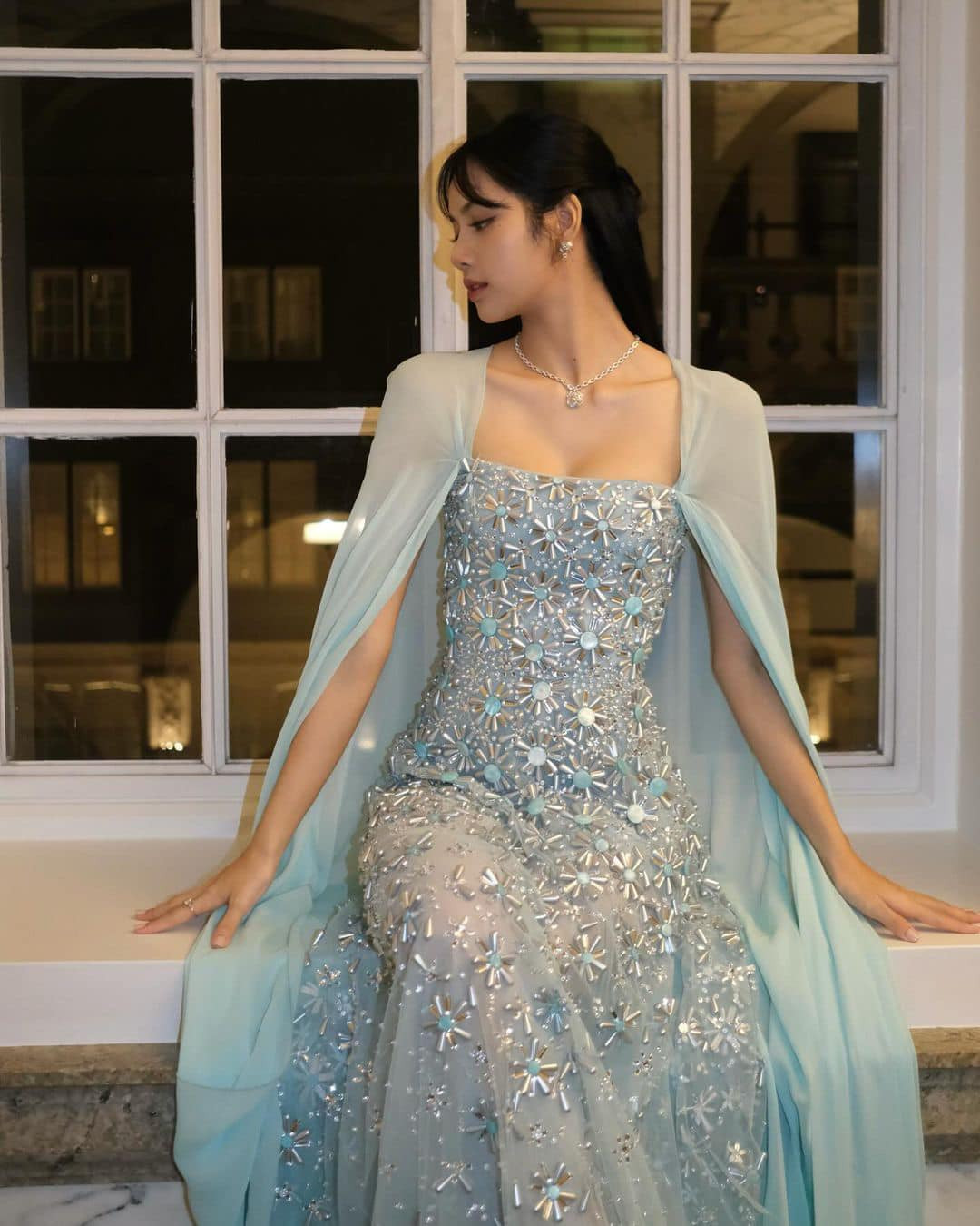 Cô khoe nhan sắc "zoom cận" trong chiếc đầm xanh của Georges Hobeika. Nàng Elsa của BLINK gây bão mạng xã hội. Bài đăng sau 1 ngày đã vượt mốc 8,2 triệu lượt "thả tim" trên Instagram.
