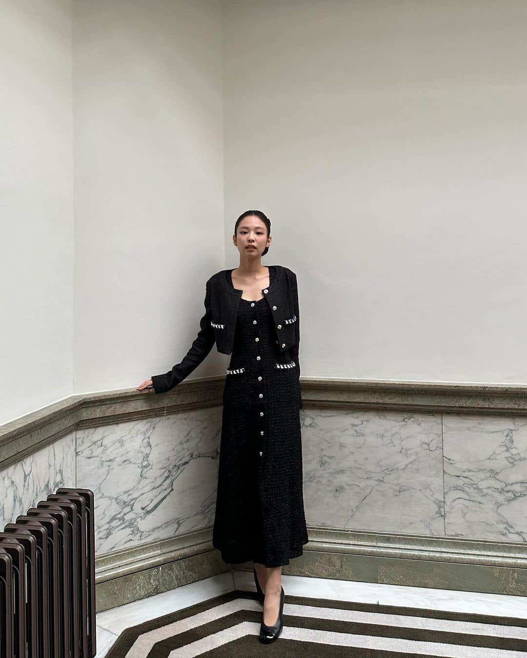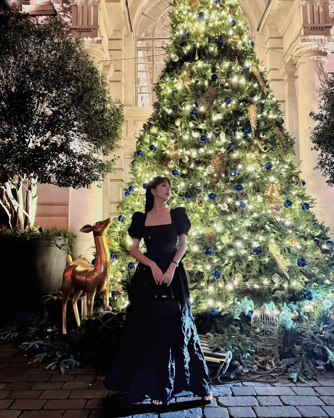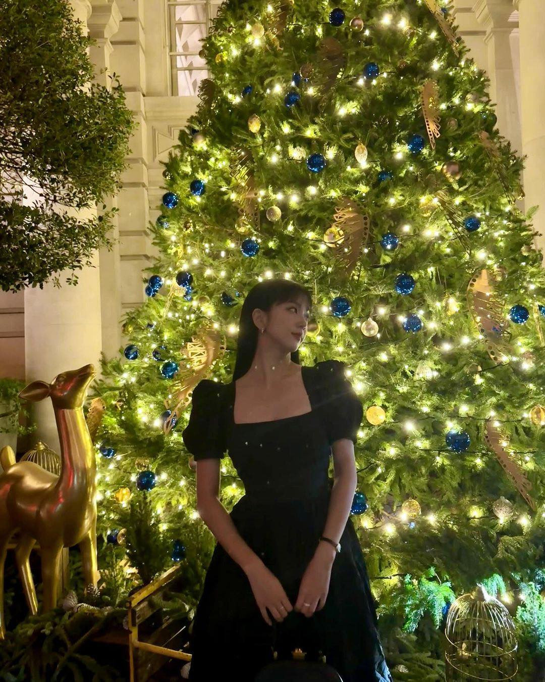 Jisoo cũng "xả ảnh" diện mạo dự quốc yến, sang trọng, yêu kiều. Chị cả của BLACKPINK còn "bonus" cho fan không khí Giáng sinh tràn màn hình khi chọn "sống ảo" bên cây thông.