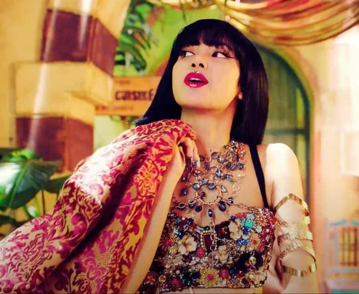 Set trang phục được Lisa lựa chọn là set đồ cá tính vô cùng bắt mắt được cô mặc trong một phân cảnh của MV How You Like That. Set trang phục với áo crop-top dạng bra đính đá cầu kỳ, quần cạp thấp ống rộng, được khen là cực kỳ hợp với phong cách của Lisa.