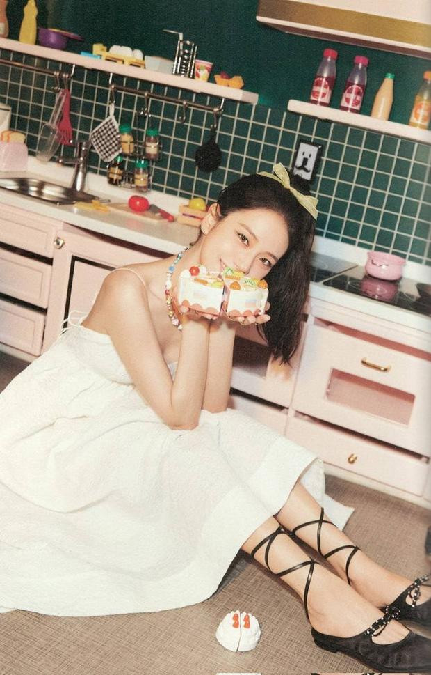 Chị cả Jisoo diện váy trắng bồng bềnh xinh như công chúa với điểm nhấn là đôi mắt sắc sảo. Kiểu tóc buộc đuôi ngựa càng giúp Jisoo khoe được gương mặt thanh tú của mình.