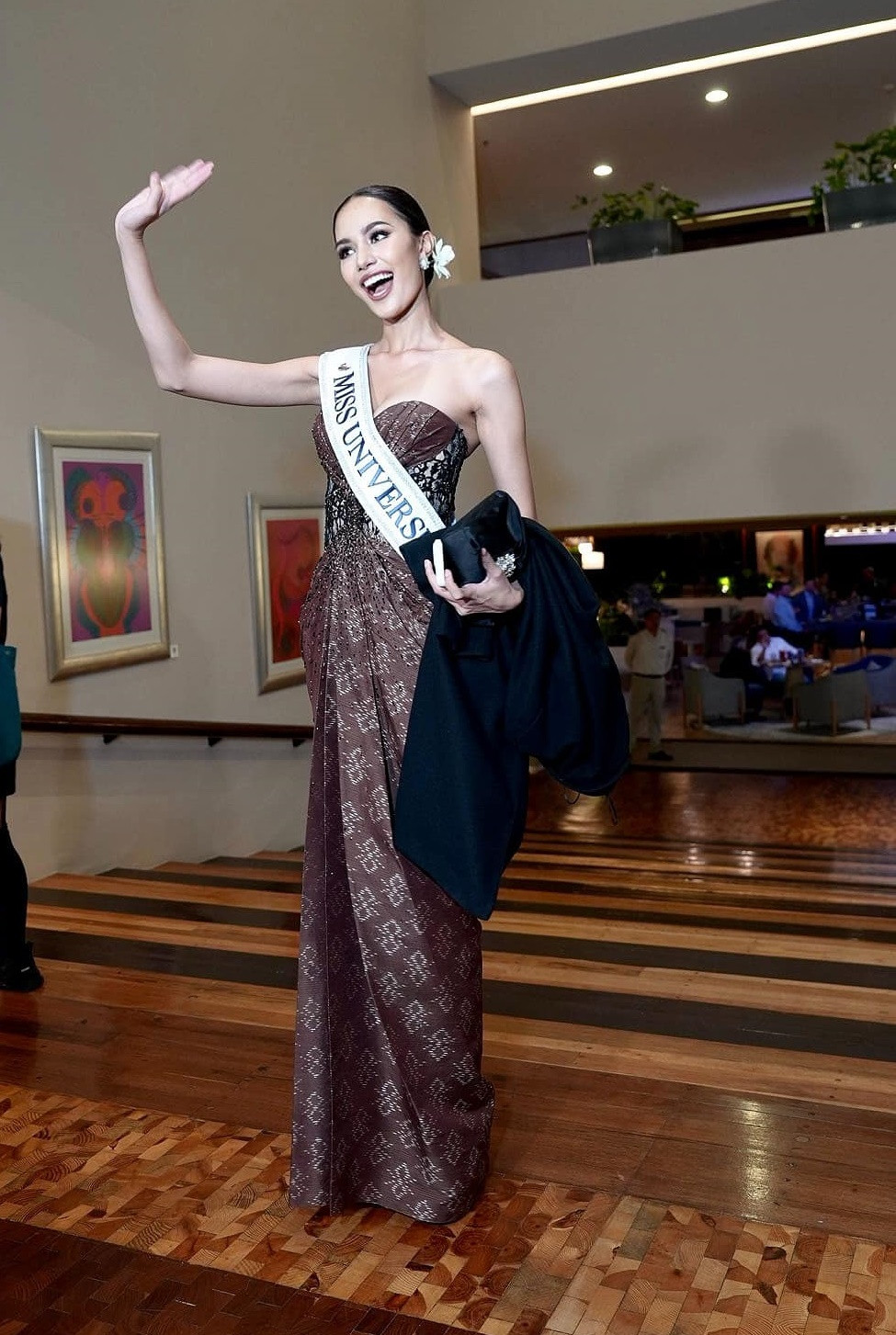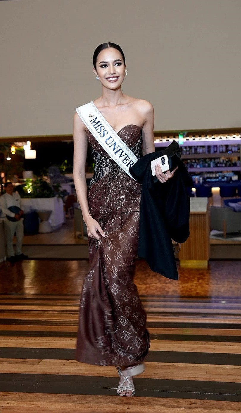 Nàng hậu Thái Lan xếp thứ 2 bảng xếp hạng này với bộ váy cúp ngực màu nâu. Cô gần như không đeo trang sức ngoại trừ đôi khuyên tai nhỏ xíu, búi tóc cao để tôn lên vẻ đẹp thanh thoát. Đại diện Thái Lan vẫn được xem là ứng cử viên sáng giá cho vương miện Miss Universe 2024 và cô đã nhanh chóng gây ấn tượng từ ngày đầu nhập cuộc.