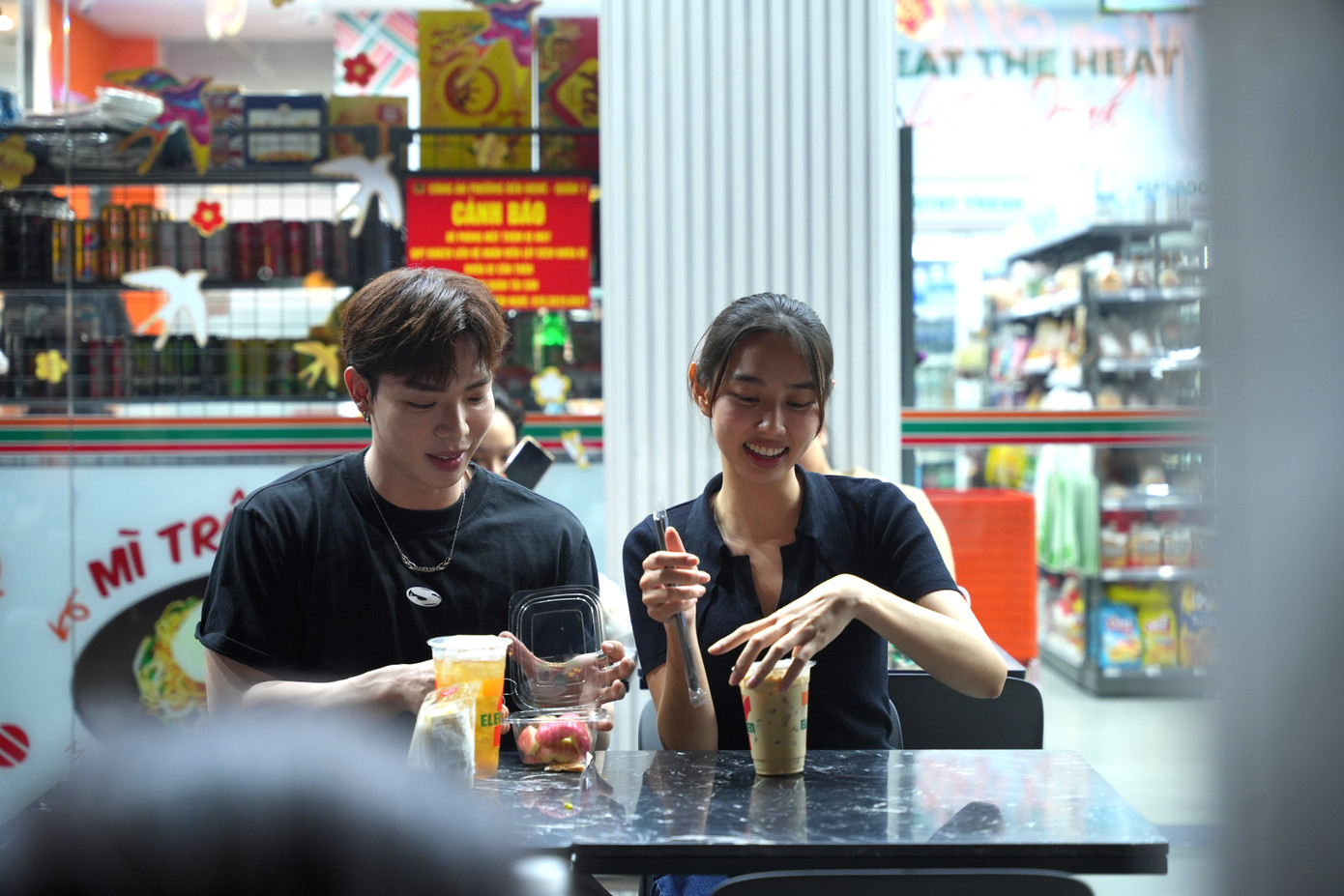 Khối lượng công việc không chỉ dừng lại ở sau quầy chính, mà còn phải luôn chân luôn tay kiểm kho, bày hàng lên kệ, dọn vệ sinh cửa hàng... Thời gian làm quen việc rất ít, mà khách hàng ra vào liên tục khiến Erik và Thùy Tiên không ngừng bận rộn. Đặc biệt là khi nhận thử thách doanh số phải bán được 30 phần mì trộn, 30 ly trà sữa từ quản lý thì càng thêm áp lực phải chào hàng năng suất hơn.