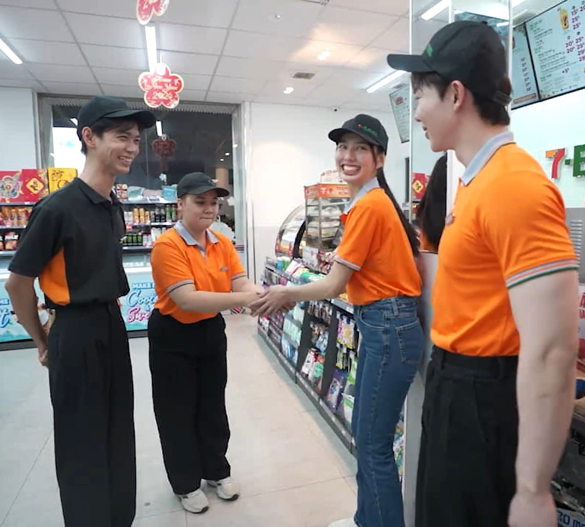 Trong sự quay cuồng với công việc,Thùy Tiên và Erik có sự đồng hành, hướng dẫn và hỗ trợ tích cực từ anh Thanh quản lý và bạn Nguyệt nhân viên. Cả hai đều có khoảng 4 - 5 năm gắn bó với công việc ở cửa hàng tiện lợi. Nhìn cách Thanh và Nguyệt chia sẻ về khó khăn, Thùy Tiên và Erik hiểu, phải đam mê và nỗ lực rất nhiều mới đi được một chặng đường xa với công việc này như thế.