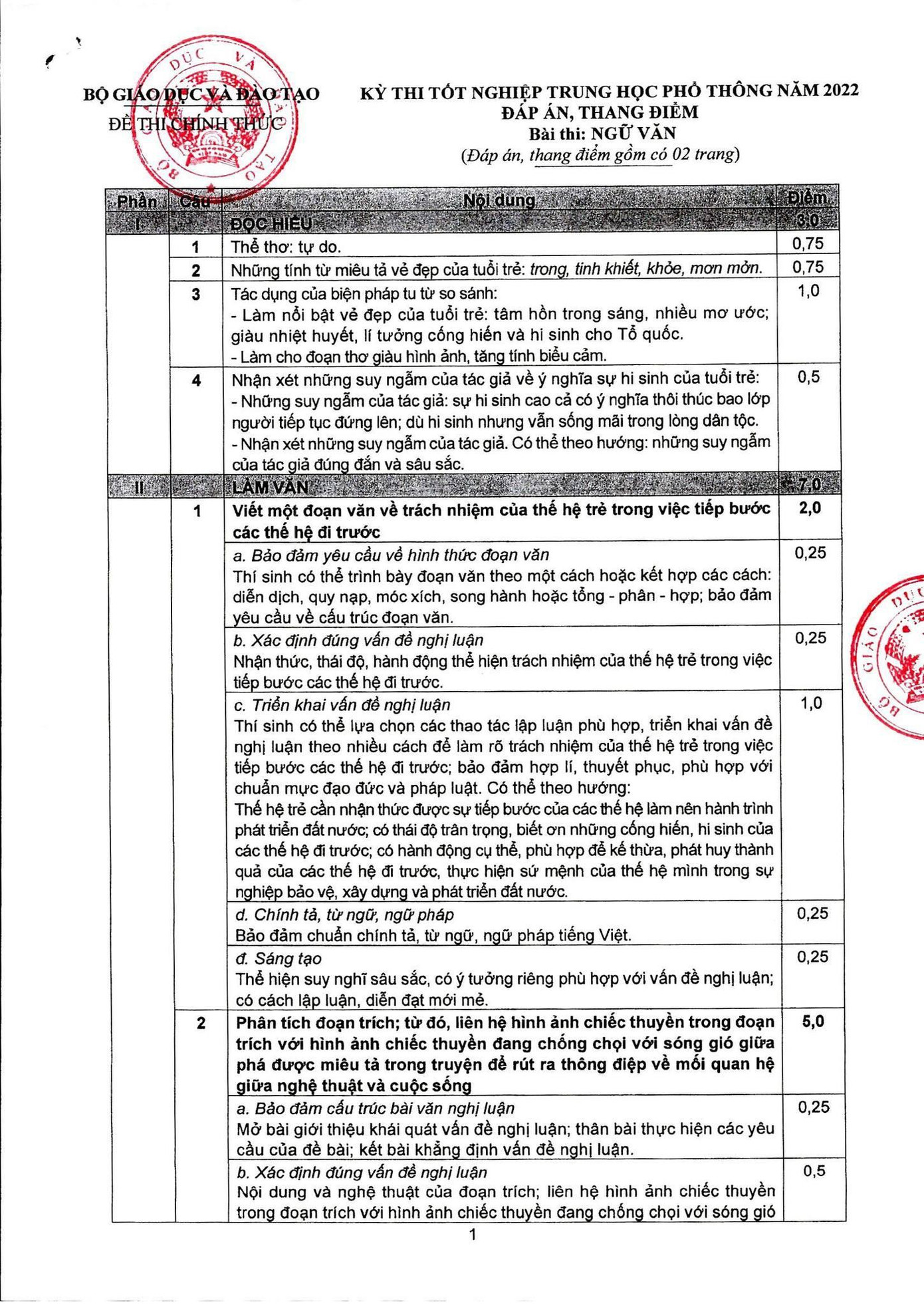 | Thang điểm, đáp án chính thức của Bộ GD&ĐT. |