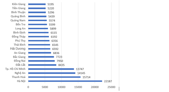 20 địa phương có số thí sinh không đăng ký xét tuyển nhiều nhất: