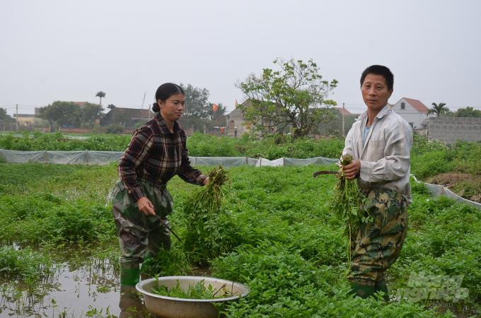 Vợ chồng chị Quy đang hái rau cần. Ảnh: Dương Đình Tường.