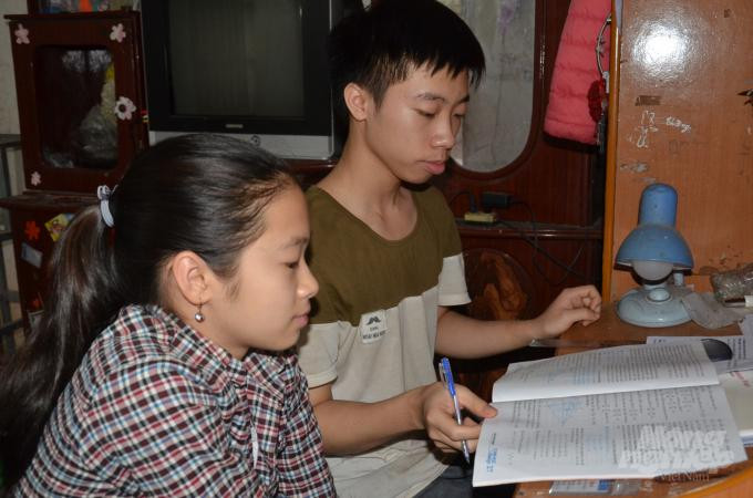 Hai anh em thường xuyên bảo ban nhau chuyện học hành. Ảnh: Dương Đình Tường.