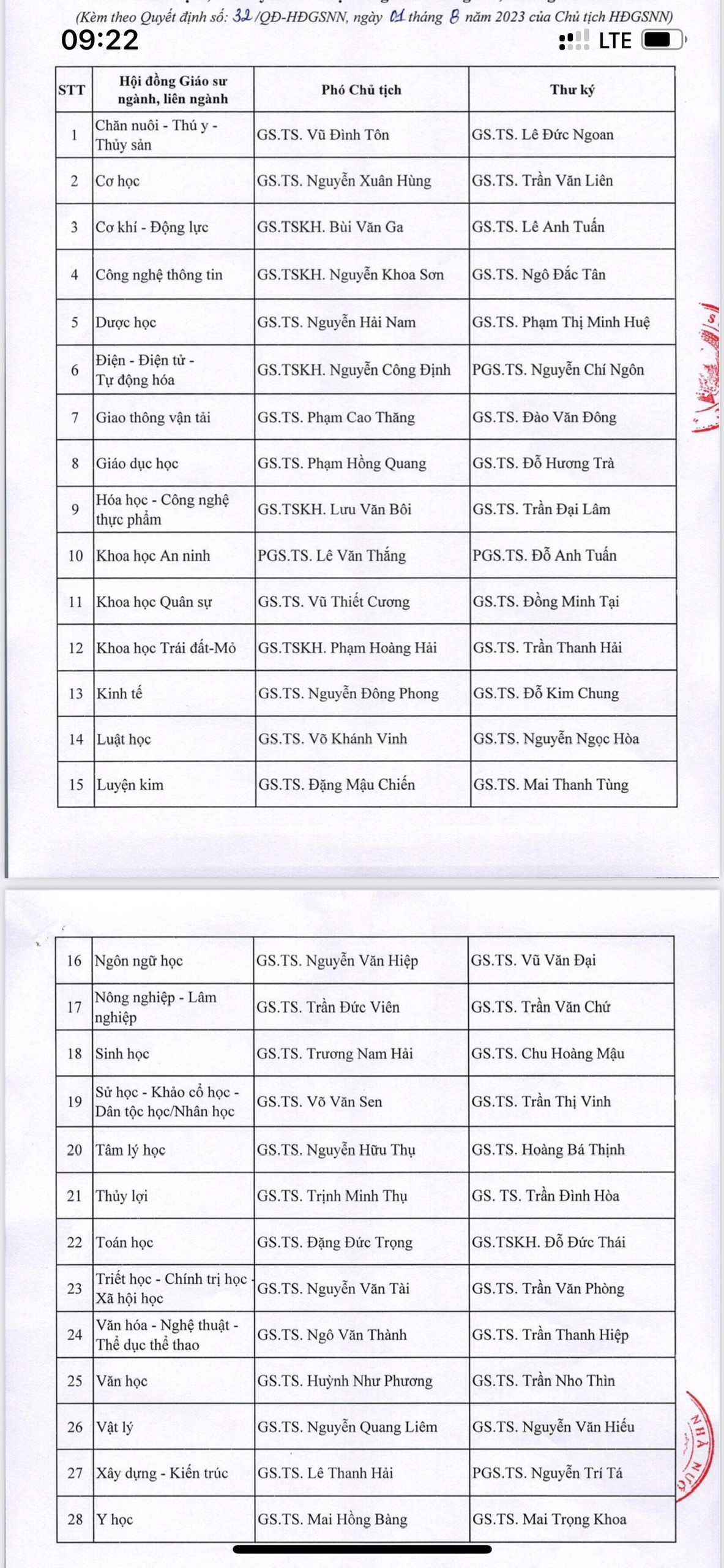 Theo Quyết định này, so với năm 2022, một số ngành/liên ngành có thay đổi Phó Chủ tịch hay Thư ký Hội đồng Giáo sư như ngành Dược, Giao thông Vận tải, Khoa học trái đất – Mỏ, Xây dựng – Kiến trúc, Văn học.