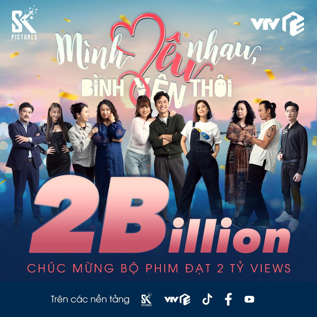 Cách đây không lâu, SK Pictures - đơn vị sản xuất “Mình yêu nhau, bình yên thôi" chia sẻ thông tin vui khi bộ phim chính thức cán mốc 2 tỷ lượt xem trên các nền tảng Facebook, Youtube và Tiktok. Chỉ mới đi 1 nửa chặng đường (50 tập), có thể nói, đây là một trong số những bộ phim đạt thành tích ấn tượng nổi bật của SK Pictures nói riêng và dòng phim truyền hình Việt nói chung.