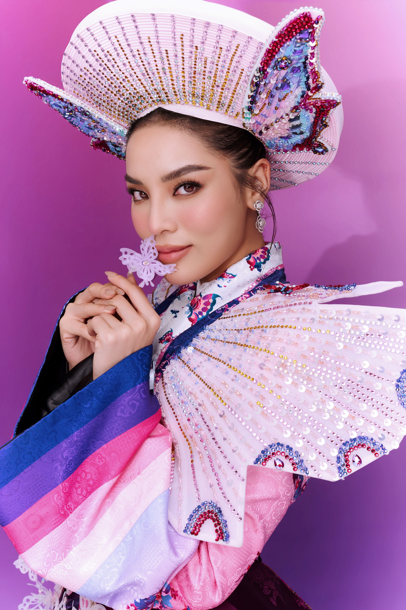 Các họa tiết cánh bướm sắp xếp khéo léo trên phần cánh tạo nên hiệu ứng sống động, tựa như một bức tranh nghệ thuật chuyển động theo từng vòng xoay của Kỳ Duyên.