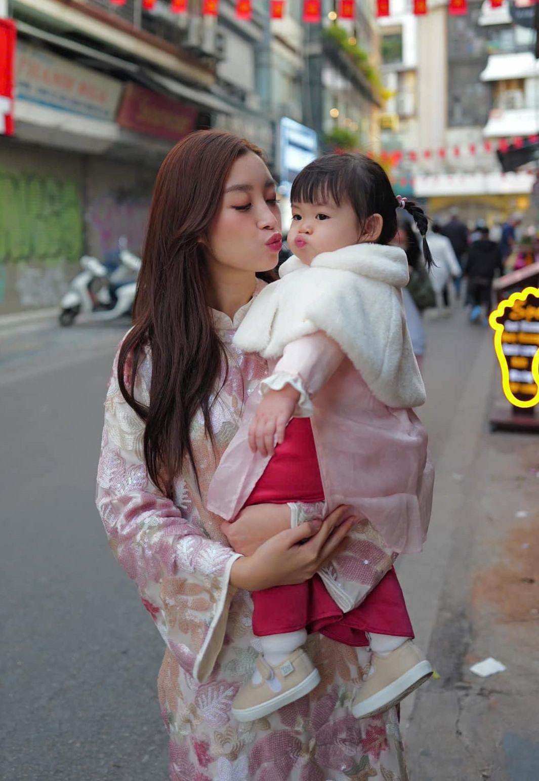 Sau khi cô gái đầu lòng được hơn 1 tuổi, Hoa hậu Đỗ Mỹ Linh đã thoải mái hơn trong việc khoe cô nhóc Tuệ An trên mạng xã hội, Suốt những ngày Tết, nàng hậu thường xuyên cập nhật các khoảnh khắc đáng yêu của bé Tuệ An khi cùng bố mẹ đi chúc Tết.