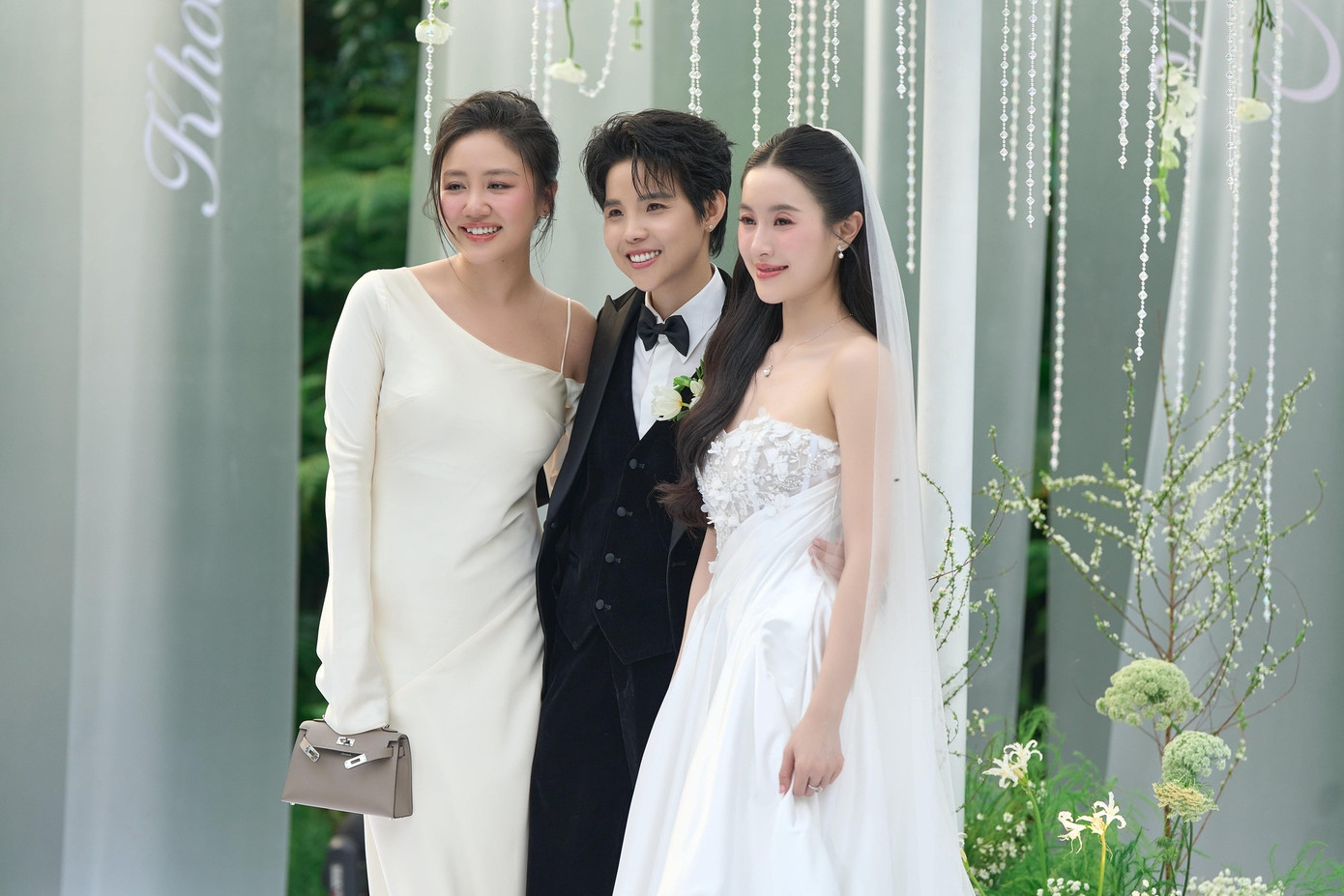 Còn Thiều Bảo Trâm xuất hiện trong bộ váy lụa cổ yếm màu be rất thanh lịch và chẳng ngờ rắc rối cũng từ đây mà ra. Sau khi bức ảnh Thiều Bảo Trâm chụp ảnh với cô dâu chú rể được đăng tải trên mạng xã hội, một số netizen đã chỉ trích nữ ca sĩ cố tình mặc váy trắng để nổi bật hơn cả cô dâu.