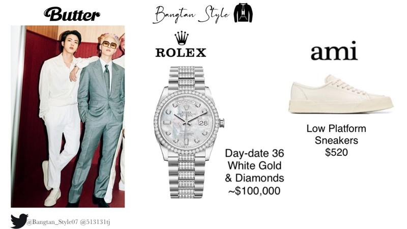 Choáng nhất là hai chiếc đồng hồ siêu sang của Jin và j-hope. Nếu như chiếc đồng hồ thương hiệu Audemars Piguet có giá lên tới gần 1,3 tỉ đồng của j-hope đã khiến netizen trầm trồ, thì chiếc đồng hồ Rolex của anh cả Jin với giá trị lên tới 2,3 tỉ đồng thực sự làm cho không ít người hâm mộ “xỉu lên xỉu xuống”.