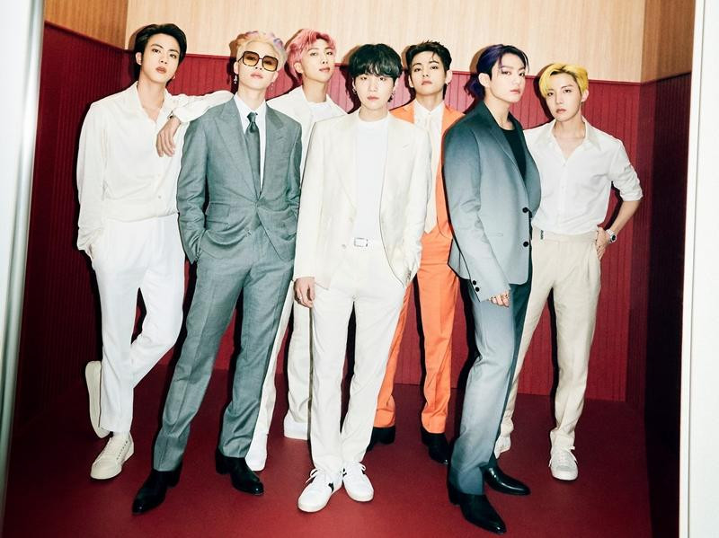 Bức ảnh được cho là chia rõ hai line nhà BTS là hyung-line (gồm 4 ông anh: Jin, SUGA, RM và j-hope) mặc toàn đồ trắng, đi giày sneaker và maknae-line (gồm 3 cậu út Jimin, V và Jung Kook) mặc 3 bộ suit có màu sắc, đi giày da đen bóng lộn.