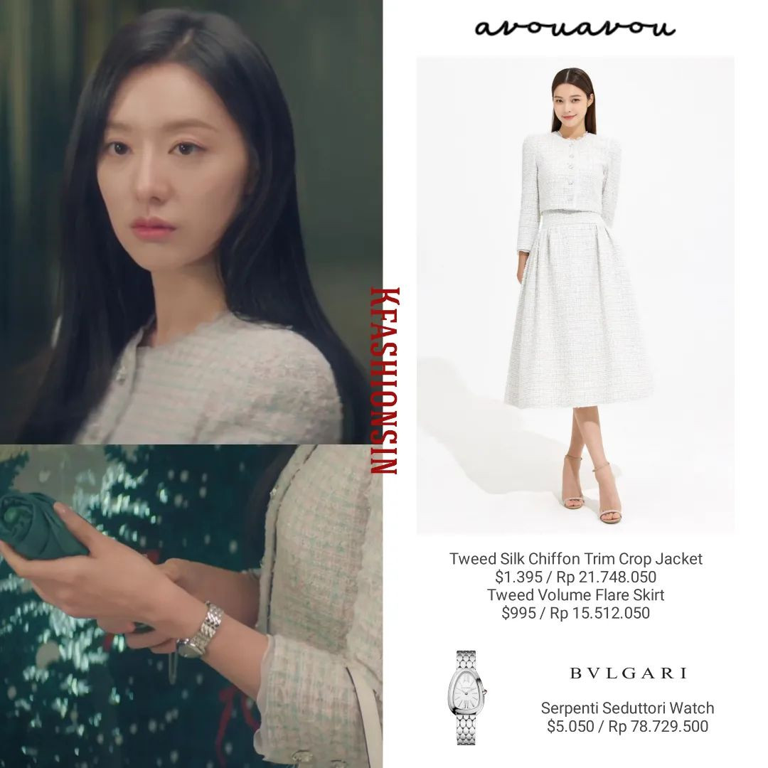 Nữ chính Hae In khéo léo phối thiết kế váy blazer cut-out có giá hơn 100 triệu đồng cùng sơ mi trắng bên trong. Cô đeo khuyên tai đính đá vàng gold có giá lên đến 244 triệu đồng.