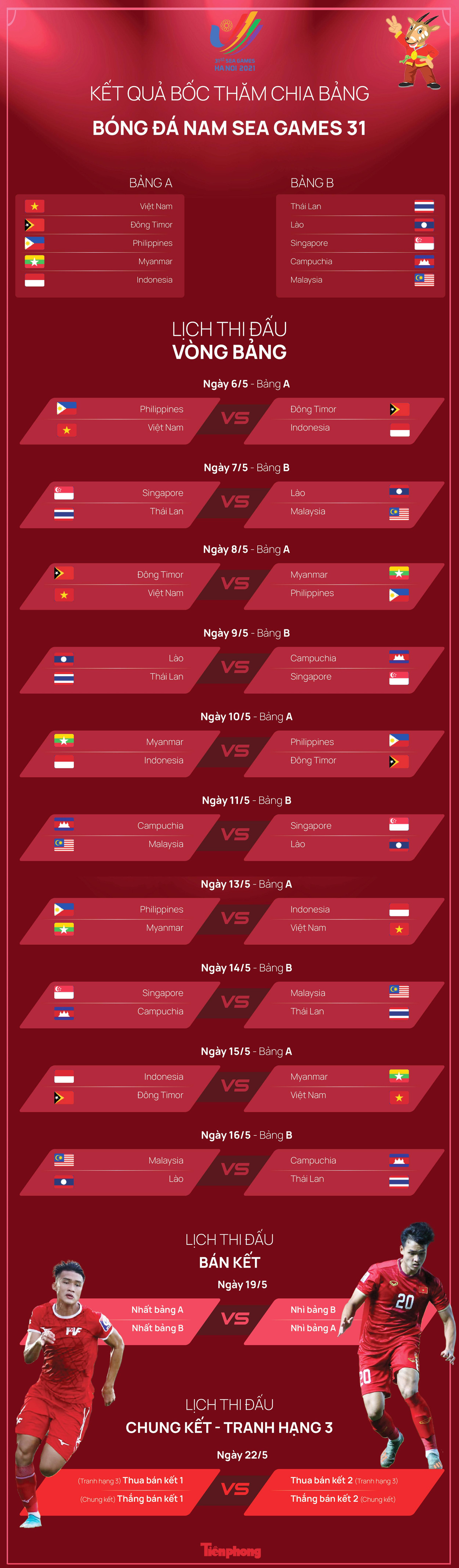 TPO - Kết quả bốc thăm chia bảng môn bóng đá nam SEA Games 31 được các chuyên gia đánh giá là khá thuận lợi cho chủ nhà Việt Nam trên hành trình bảo vệ ngôi vương.