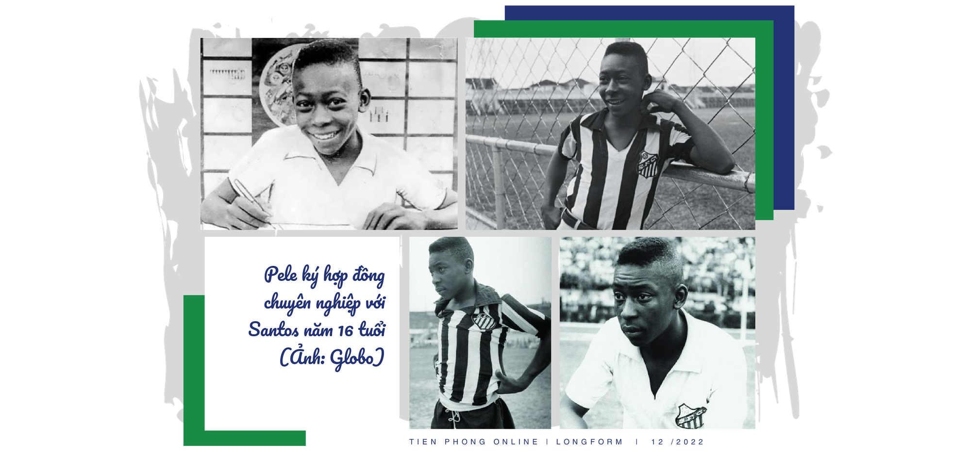 Thế nhưng Pele không được sinh ra để làm công nhân. Định mệnh chọn ông là Vua. Vì vậy ở tuổi 15, Pele tới Santos. Anh ghi bàn ngay trận ra mắt. Sang tuổi 16, Pele đã là ngôi sao trong đội và Vua phá lưới của giải đấu, sau đó được gọi lên tuyển Brazil, tiếp tục nổ súng ở trận đầu tiên và trở thành cầu thủ trẻ nhất ghi bàn cho Selecao, một kỷ lục cho đến nay vẫn chưa ai phá được.