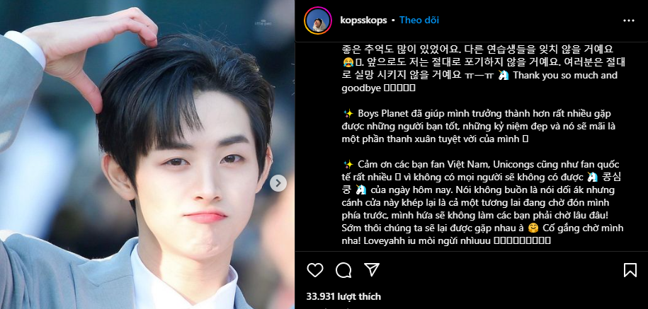 Thành Công mở lại Instagram cá nhân. Anh chia sẻ bài viết đầu tiên sau khi rời Boys Planet 999 là những dòng cảm ơn bằng người hâm mộ bằng tiếng Việt và tiếng Hàn. Nam TTS cũng chia sẻ một số ảnh selfie, đi ăn cùng các TTS của Boys Planet 999, biển quảng cáo do fan chuẩn bị tại các ga tàu... khiến fan xúc động.