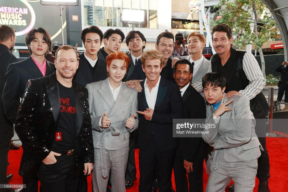 Boyband đời đầu New Kids On The Block chụp ảnh cùng BTS, nhóm nhạc nam nổi tiếng nhất hiện tại.