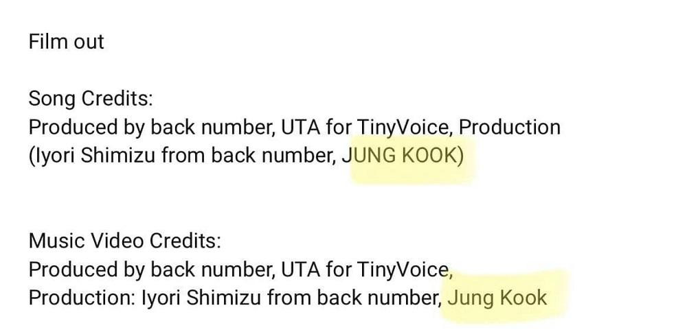 Với Film Out, BTS đã kết hợp cùng ban nhạc Rock Nhật Bản Back Number. BTS cho biết Film Out là bài hát sẽ khiến trái tim nhiều người phải thổn thức và xao xuyến.