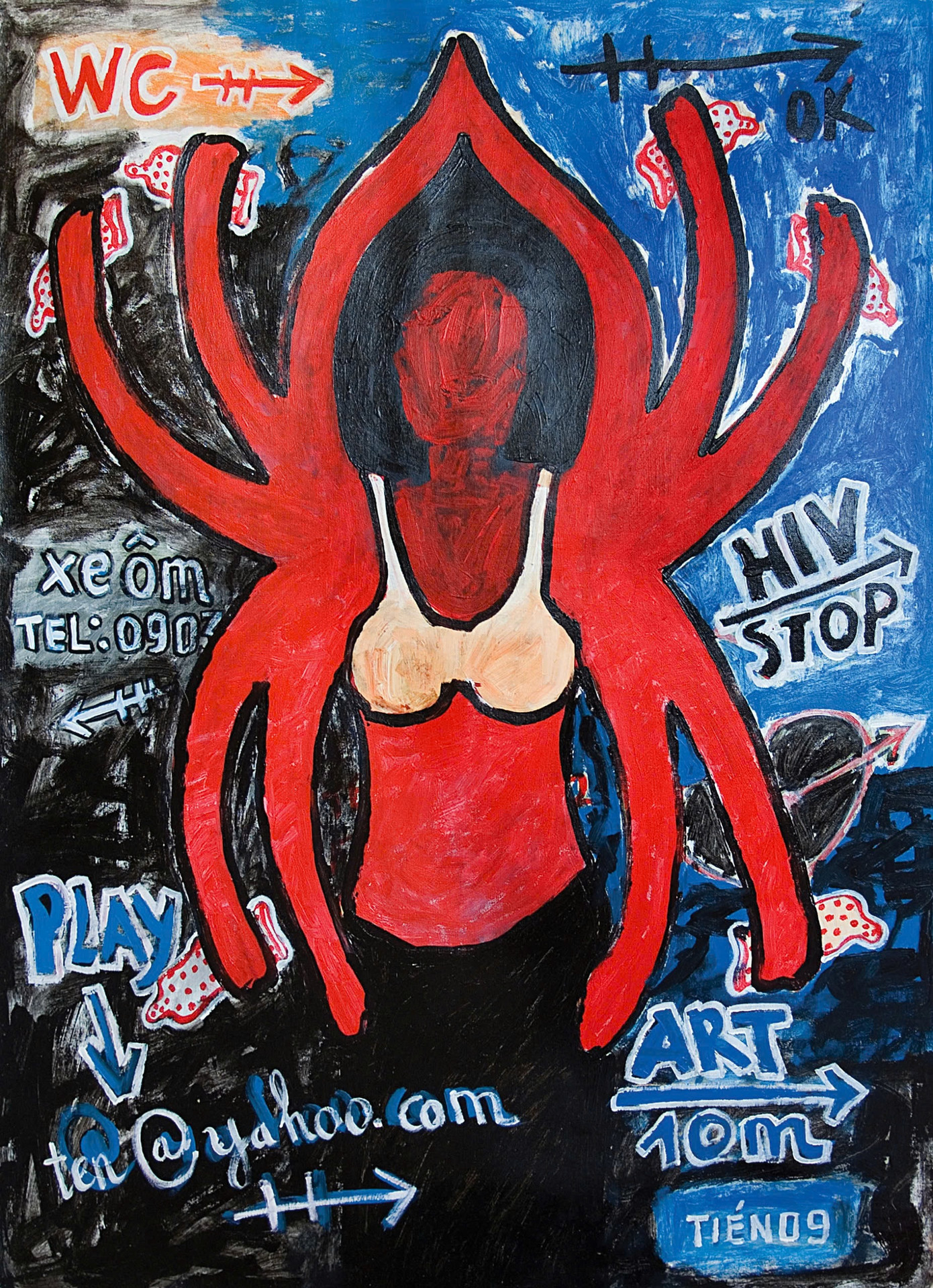Họa sĩ chia sẻ anh không né tránh những vấn đề xã hội mà đối diện, quan sát: “Tôi ít khi chọn đề tài trước cho những sáng tác của mình. Thay vào đó, tôi thường quan sát sự việc mà không phán xét, những vấn đề đời sống xã hội tự đi vào tác phẩm của tôi. Thế là tôi bắt tay vào công việc và hành động luôn, hành động trước dẫn dắt hành động tiếp theo, kiểu như dò đá qua sông”.